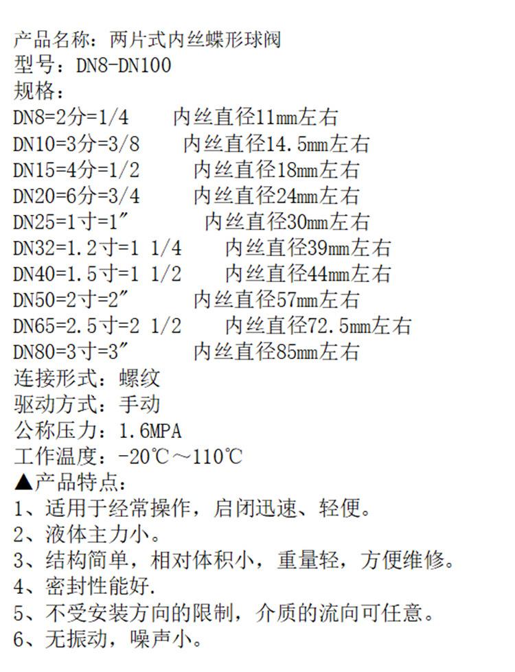 Butterfly two-piece threaded ball valve