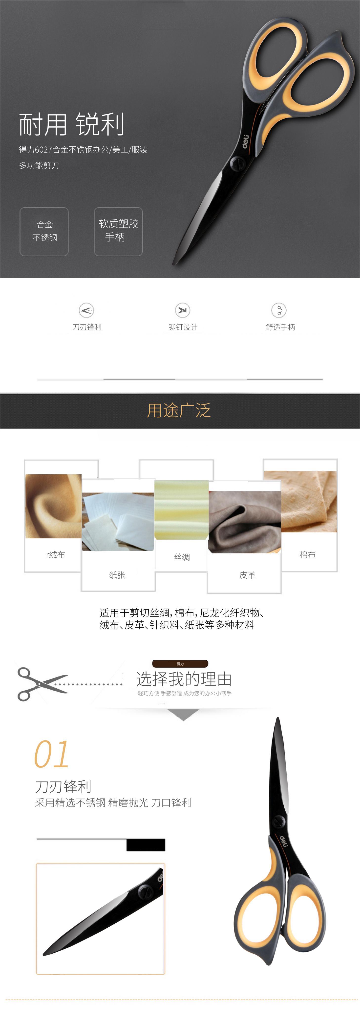 Compra Deli 6027 Tijeras Oficina Acero Inoxidable Hoja Negra Mediana Puntiaguda Hogar Negocios Cortador de Mano al por mayor en Joom.pro
