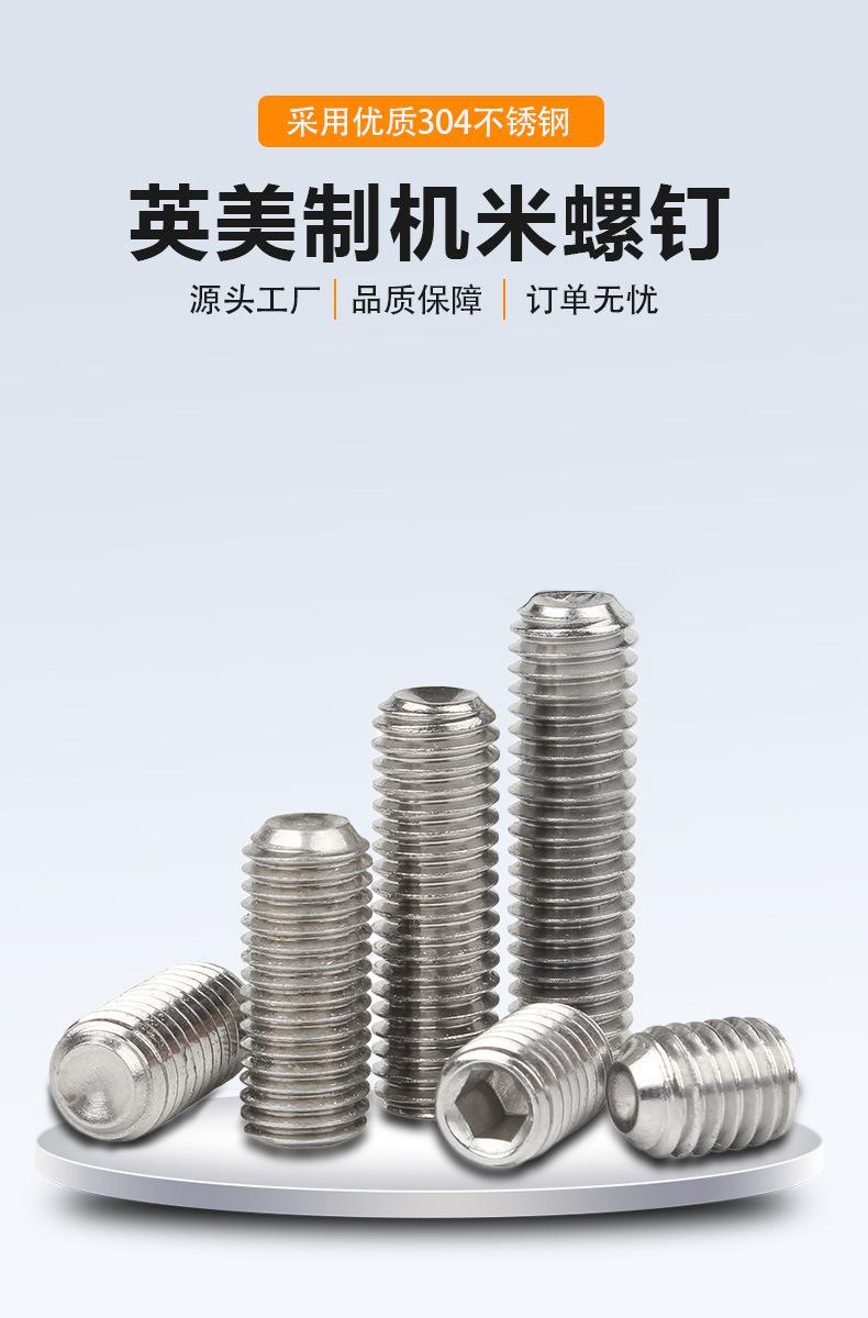 Tornillo de fijación de extremo cóncavo de 304 pulgadas de acero inoxidable/tornillo de máquina americano con base de alambre de tornillo sin cabeza de enchufe hexagonal
