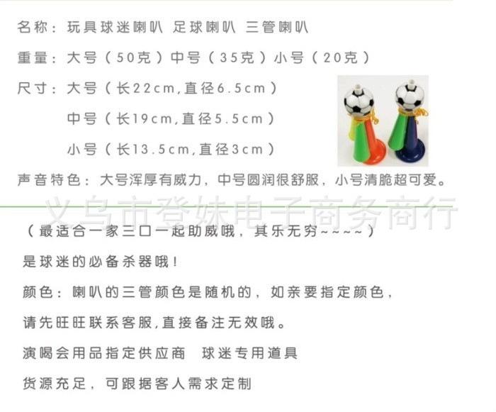 Nombre: Bocina de juguete, bocina de fútbol, bocina de tres tubos.