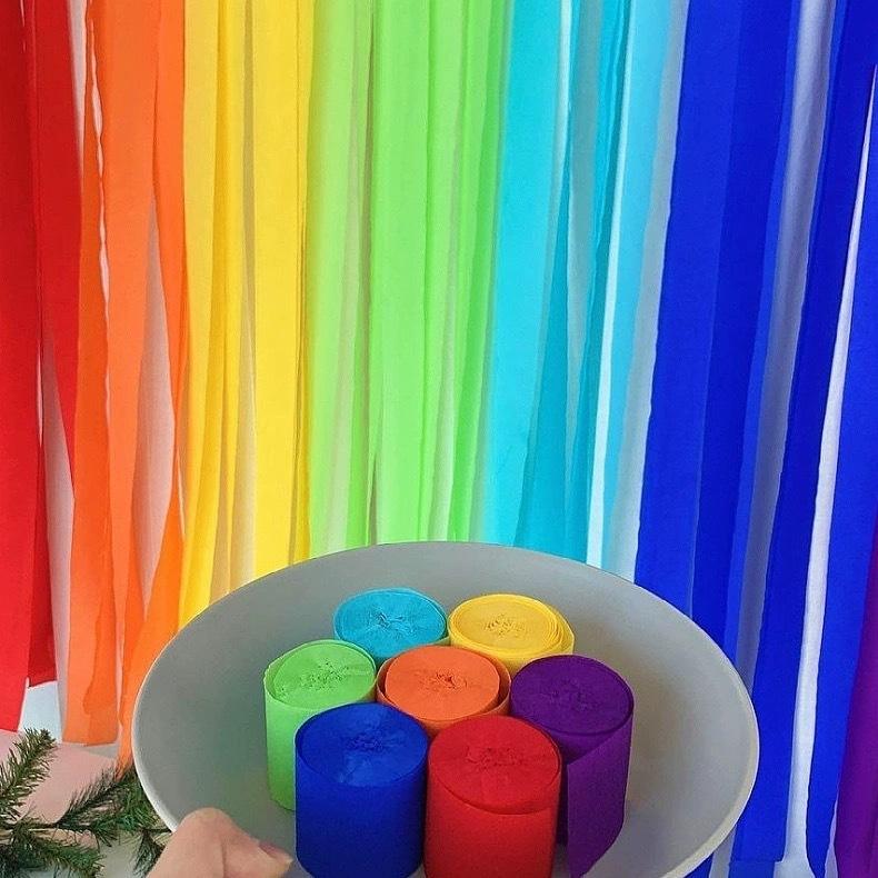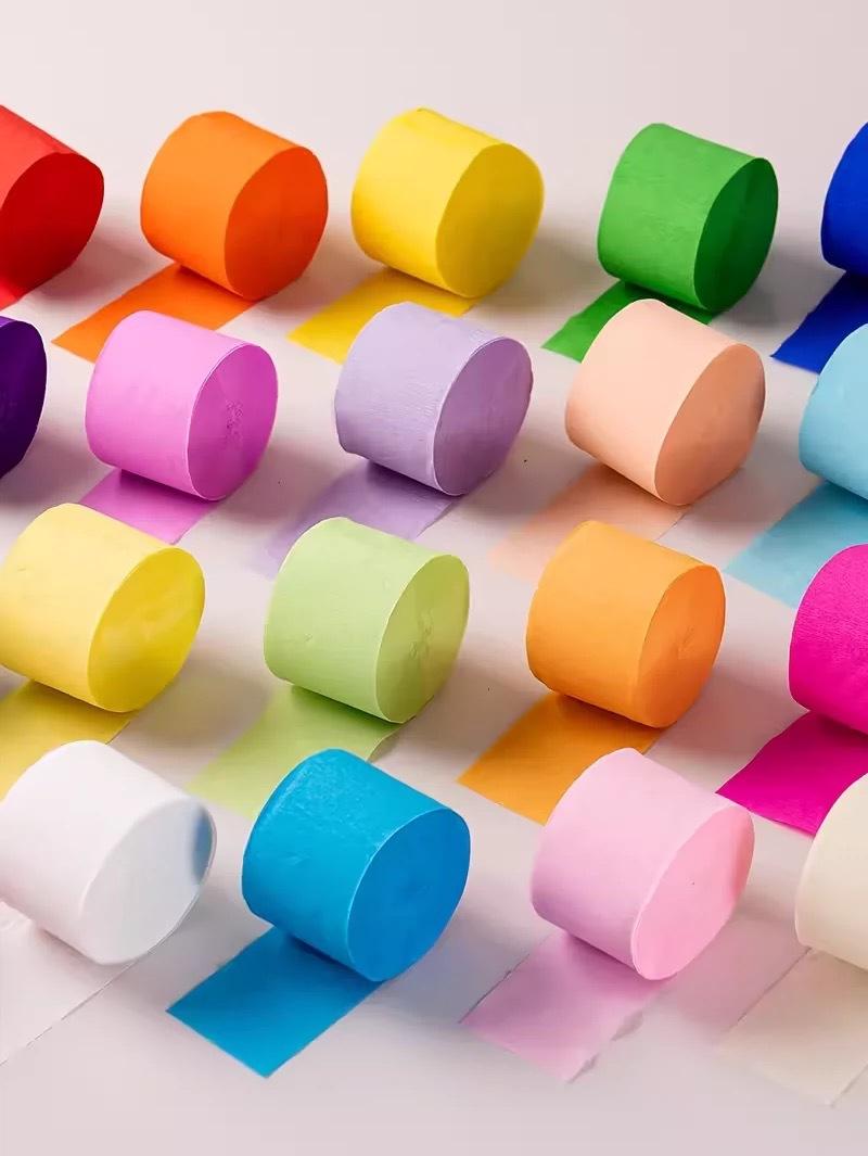 Red-crepe paper (3.5cm * 10m), Orange-crepe paper (3.5cm * 10m), Yellow-crepe paper (3.5cm * 10m), Green-crepe...