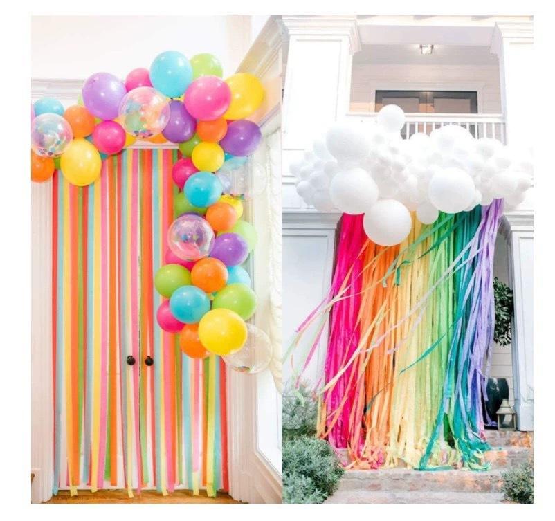 Papel crepé Laihua colorido con cinturón colorido y borlas de seda de lluvia para fiestas de cumpleaños infantiles, bodas y salas de estar, fondo decorativo de pared.