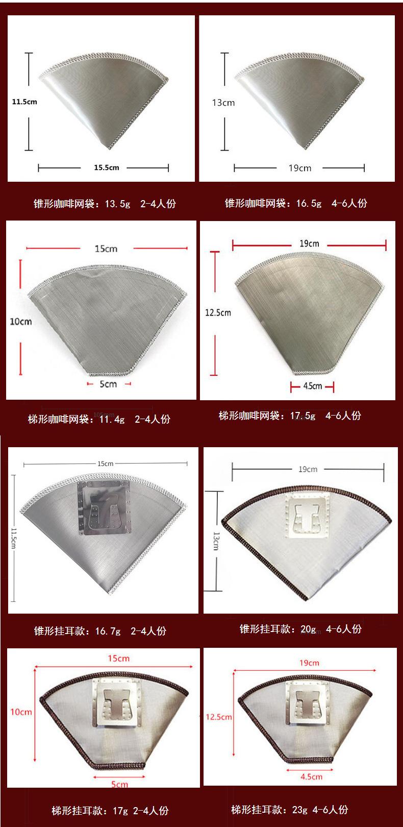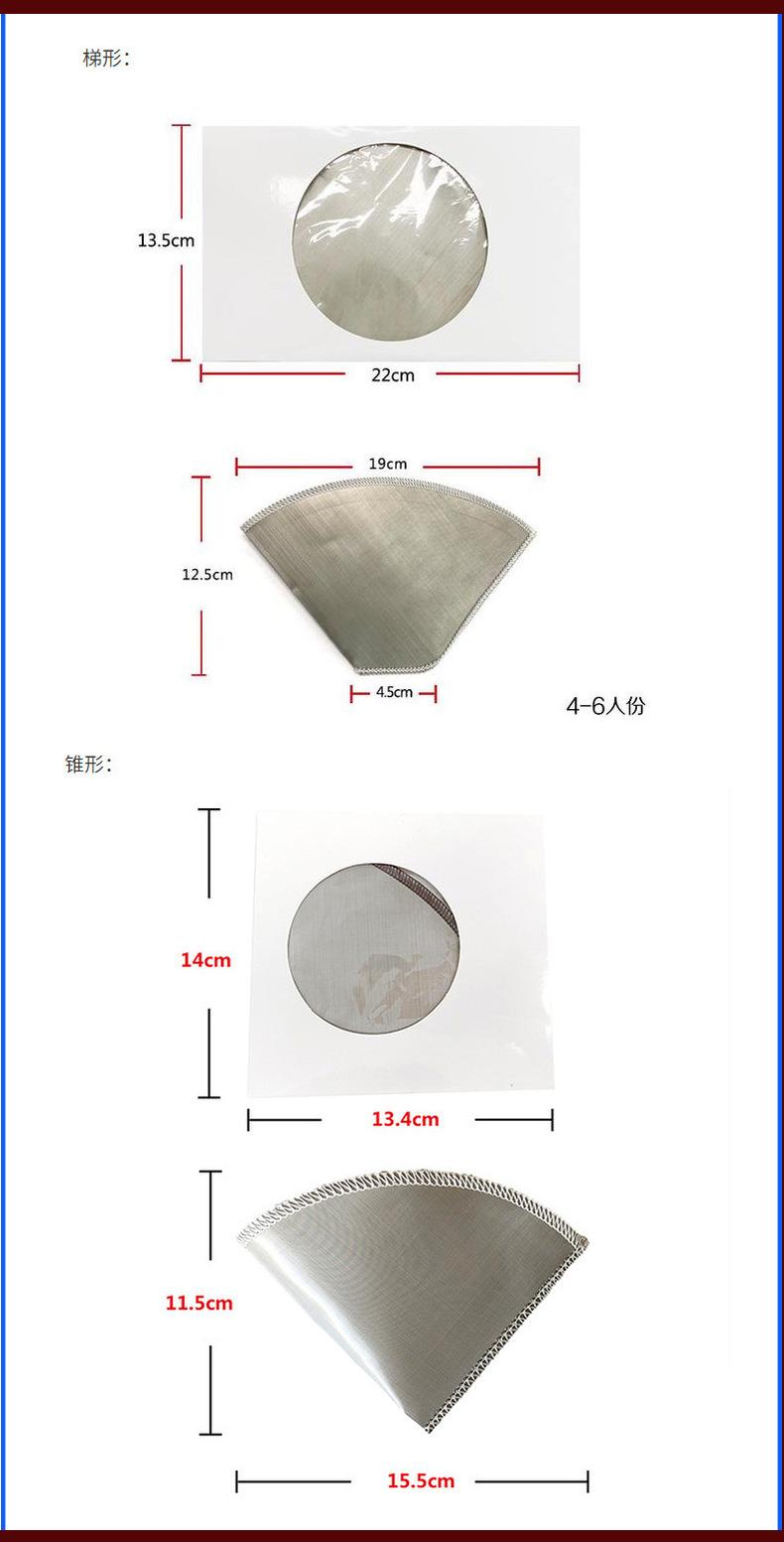 Filtro de café 304 1-2 personas filtro de café de acero inoxidable bolsa 115mm goteo de café doméstico