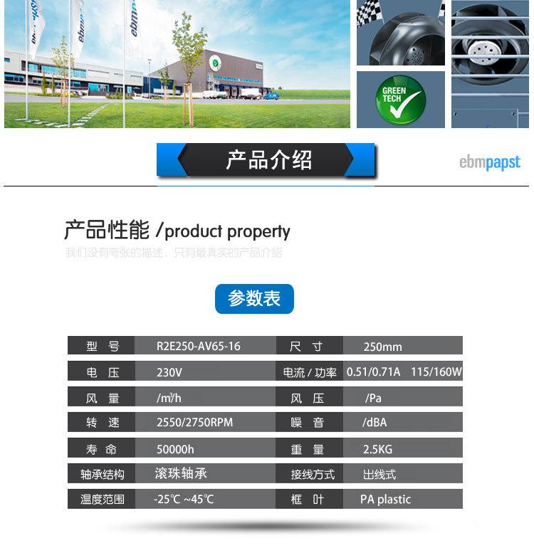 Ventilador centrífugo con motor de accionamiento de aire fresco de inductancia lateral de red de 230 V autorizado oficialmente por ebm R2E250-AV65-16