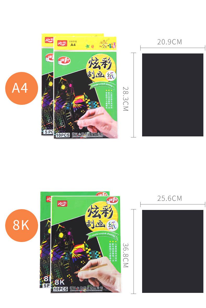 Traje de papel para rascar A4 8K colorido para niños, hecho a mano, creativo, para pintar con colores, arte educativo, venta al por mayor