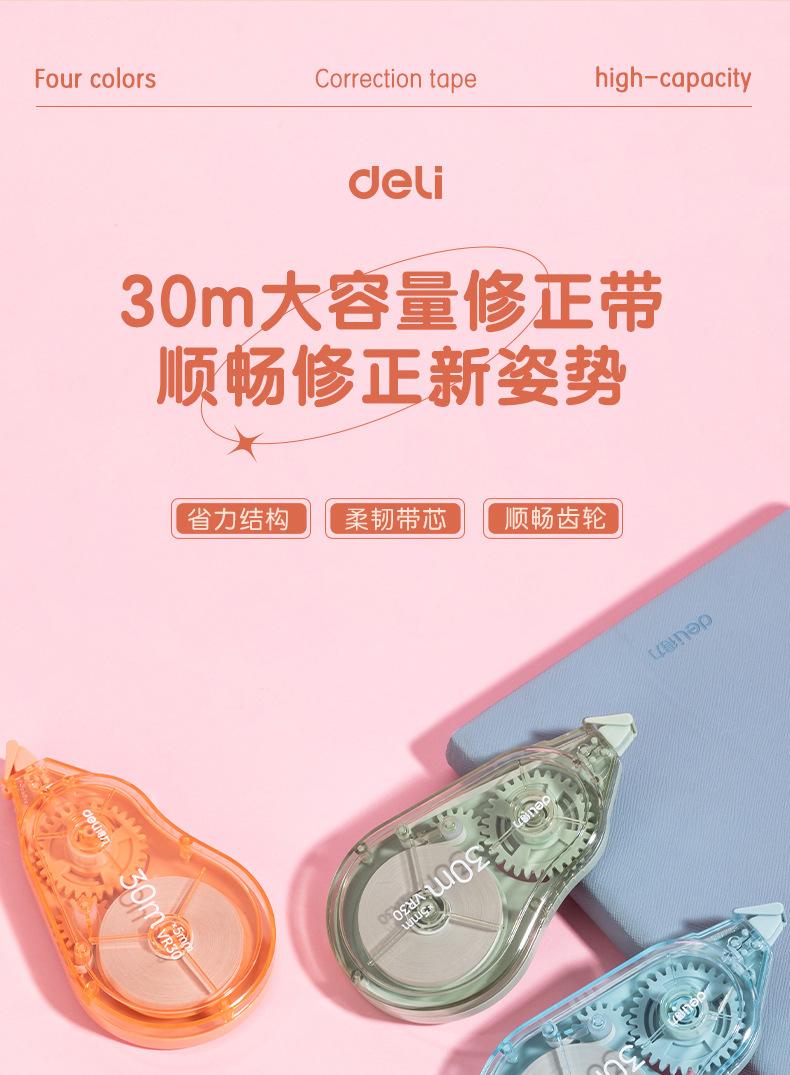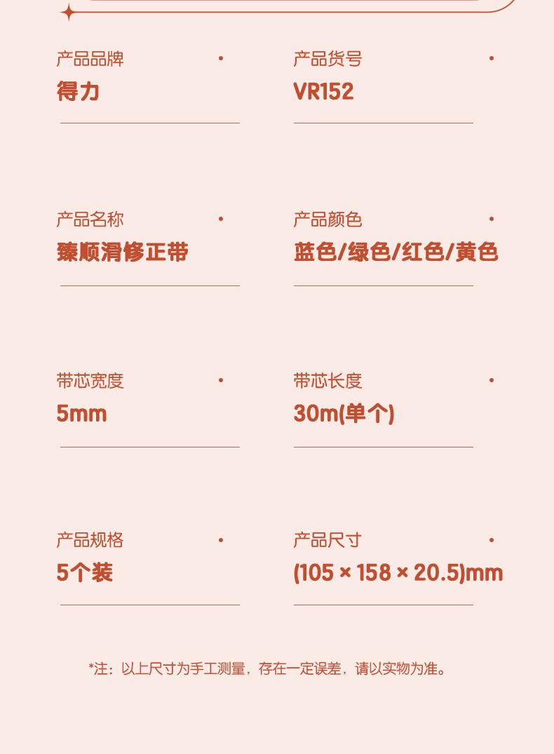 [Paquete de 5] Set de Cinta Correctora Deli VR152 para Ahorrar Trabajo, 150 m Cinta Correctora Cinta Correctora