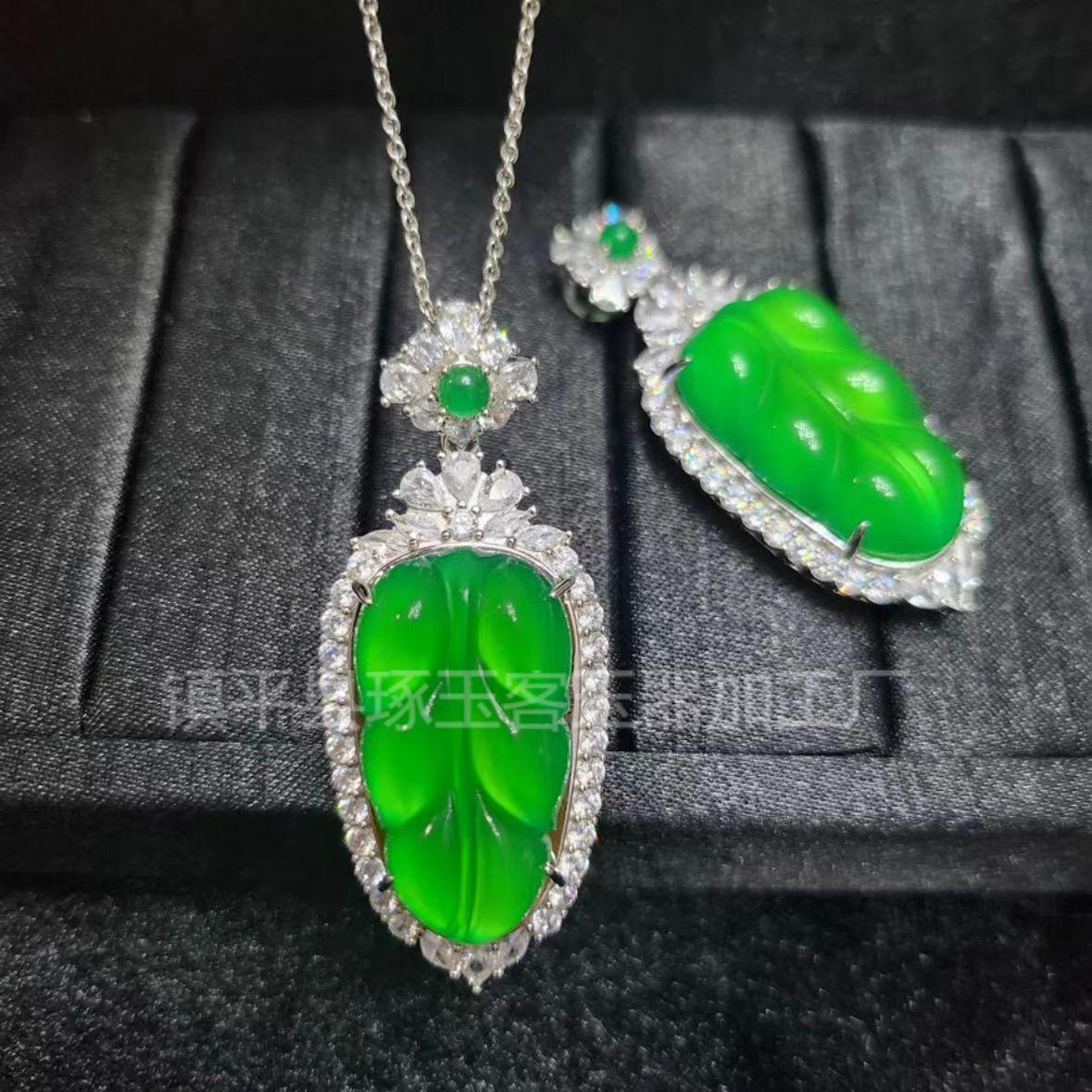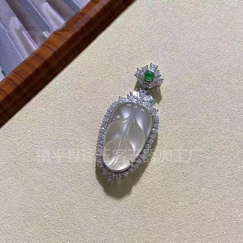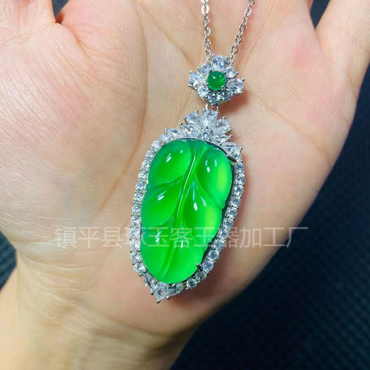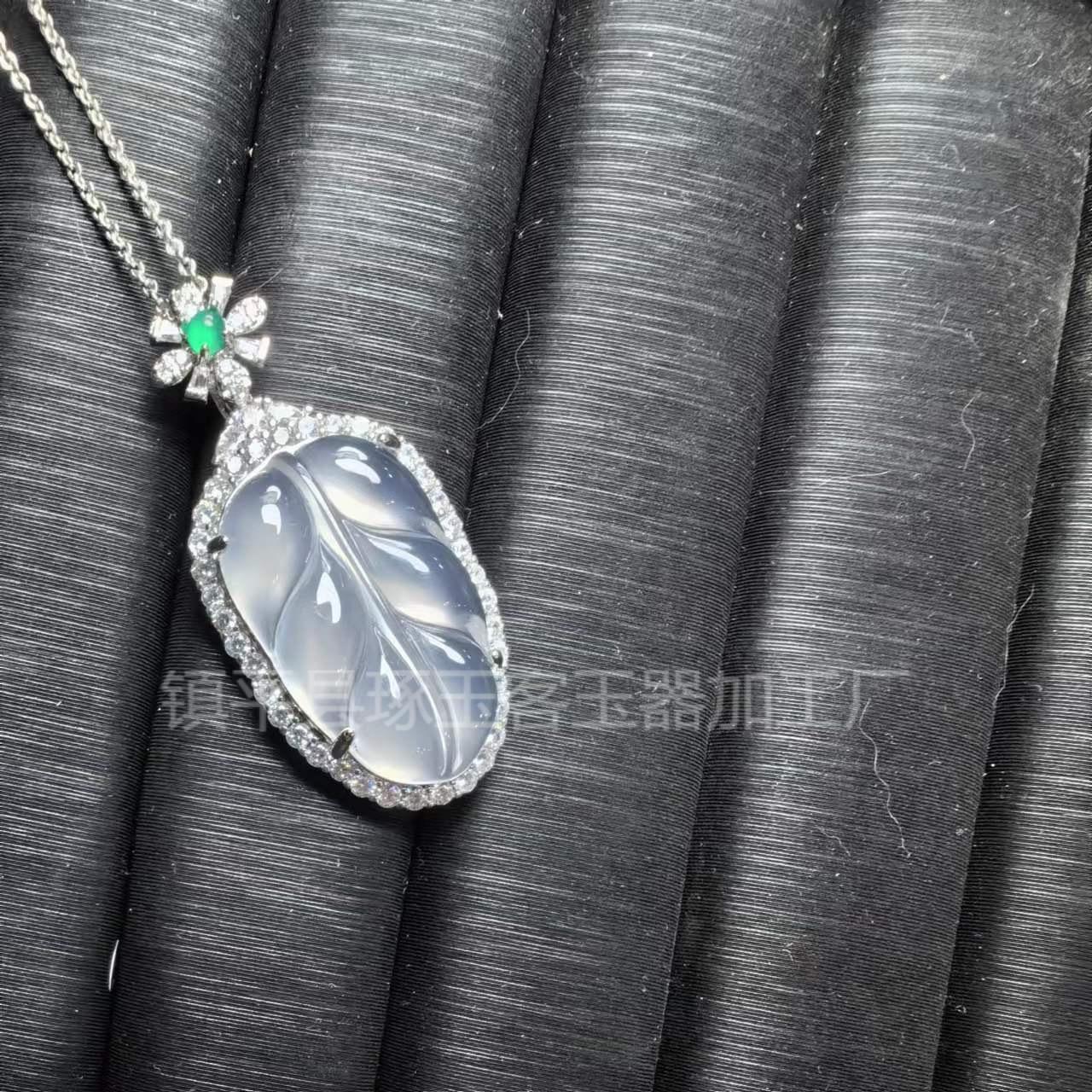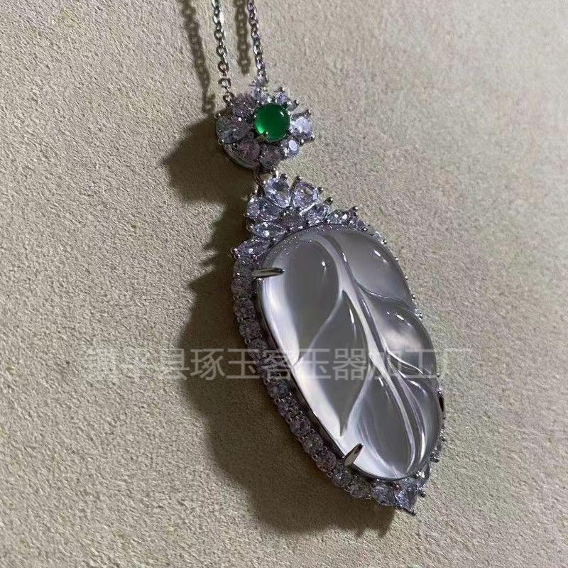 [Nombre del producto] Hojas de jade de calcedonia de hielo alto con incrustaciones plateadas