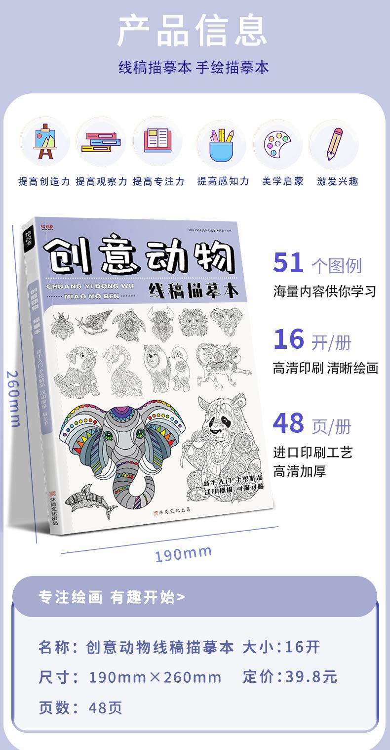 Libro de Descripción de Borrador de Línea de Animales Creativos Trazo Simple Dibujo Animado Dibujo Animado Material Pintura Básica Arte Ilustración Introducción