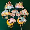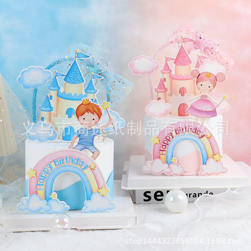 Inserto de tarjeta para tarta de cumpleaños con diseño de castillo de nubes de arcoíris creativo, arco suave, decoración para tarta de fiesta del Día del Niño