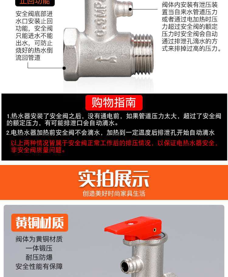 Compra Válvula de alivio de presión para calentador de agua eléctrico totalmente de cobre, válvula reductora de presión, válvula de retención unidireccional doméstica, válvula de escape reguladora de presión, junta de ajuste de puerta al por mayor en Joom.pro
