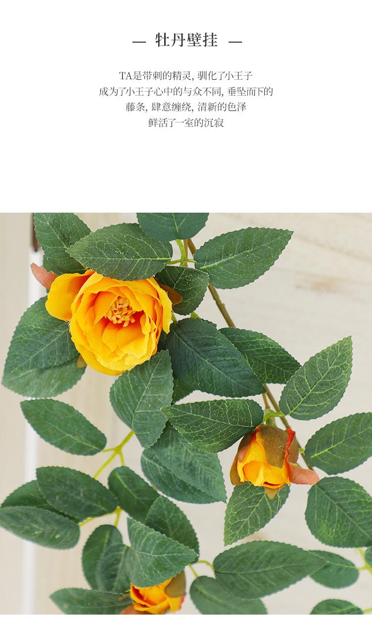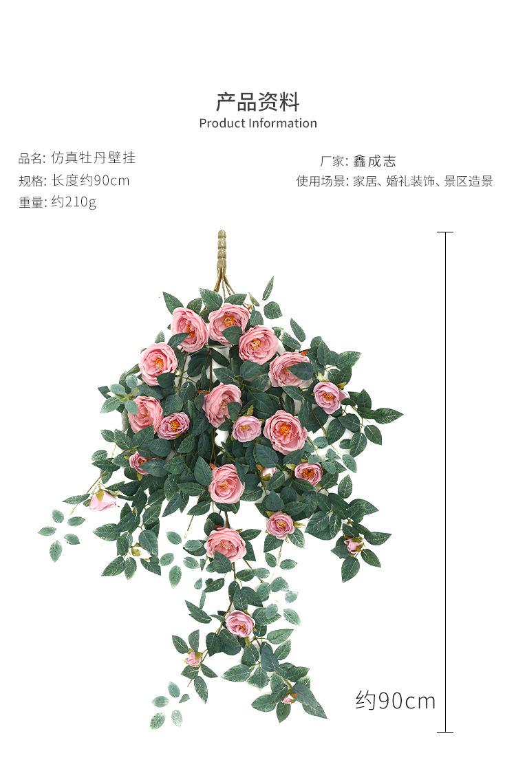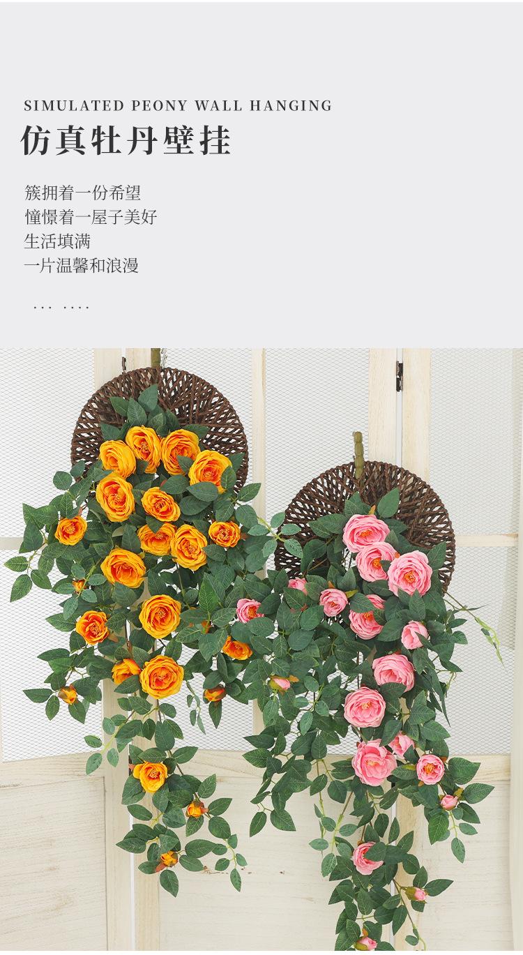 Simulación de peonía, flor colgante de pared para sala de estar, tubería de pared para ventana, balcón, boda, hotel, flores decorativas, plantas verdes falsas.
