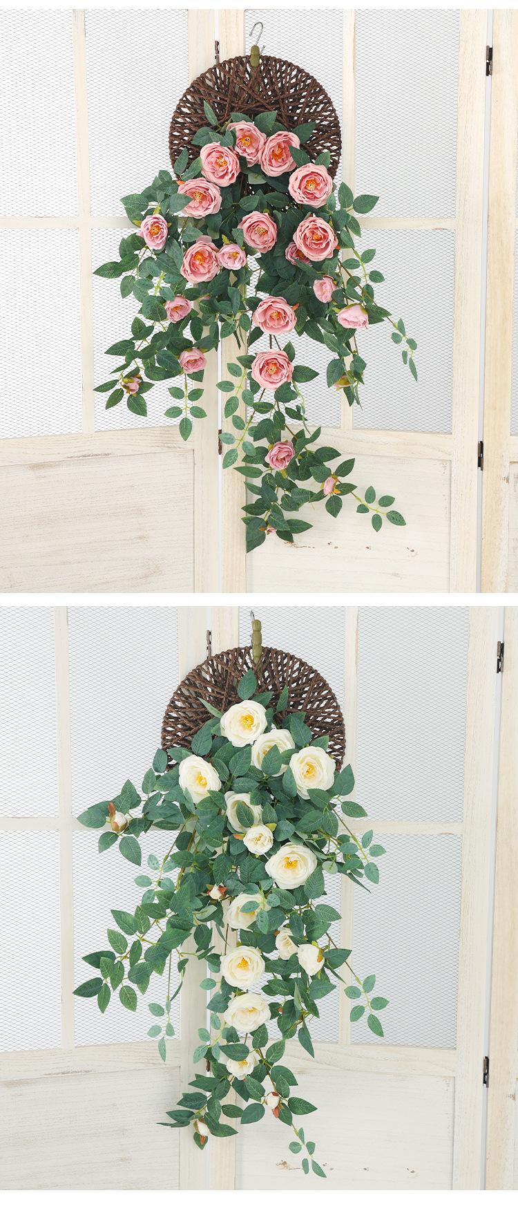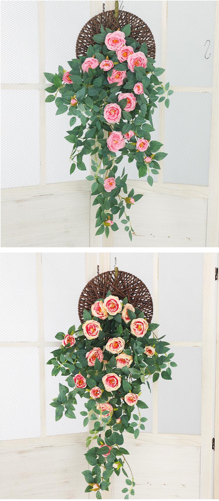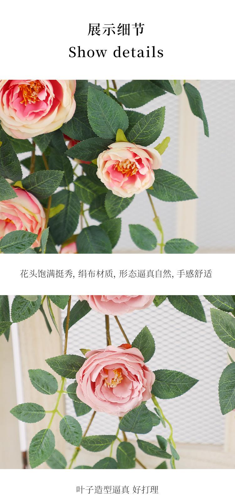Simulación de peonía, flor colgante de pared para sala de estar, tubería de pared para ventana, balcón, boda, hotel, flores decorativas, plantas verdes falsas.