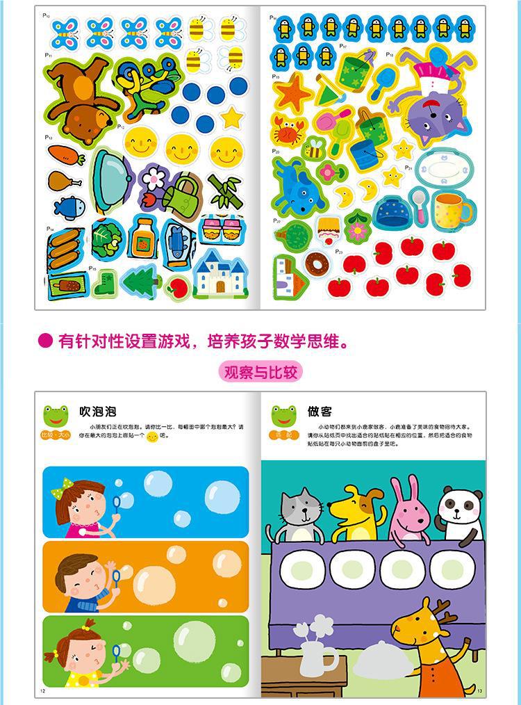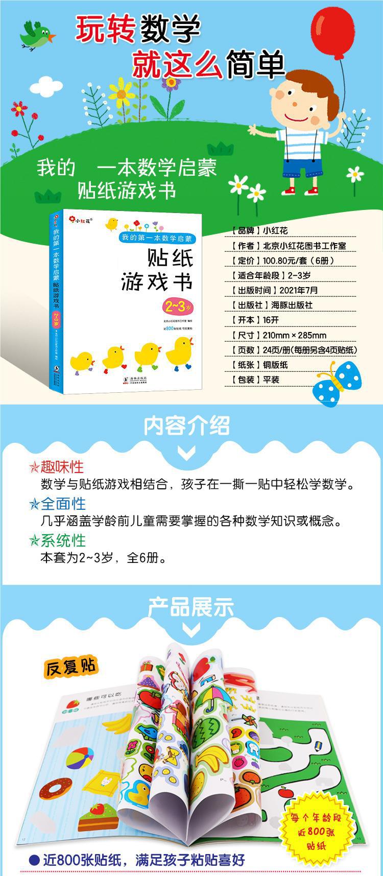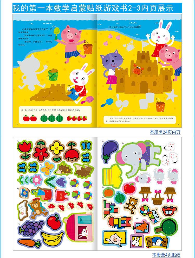 Libro de juego de pegatinas matemáticas de la pequeña flor roja de Bonchen, educación temprana, iluminación, pensamiento matemático, entrenamiento lógico, libros infantiles al por mayor