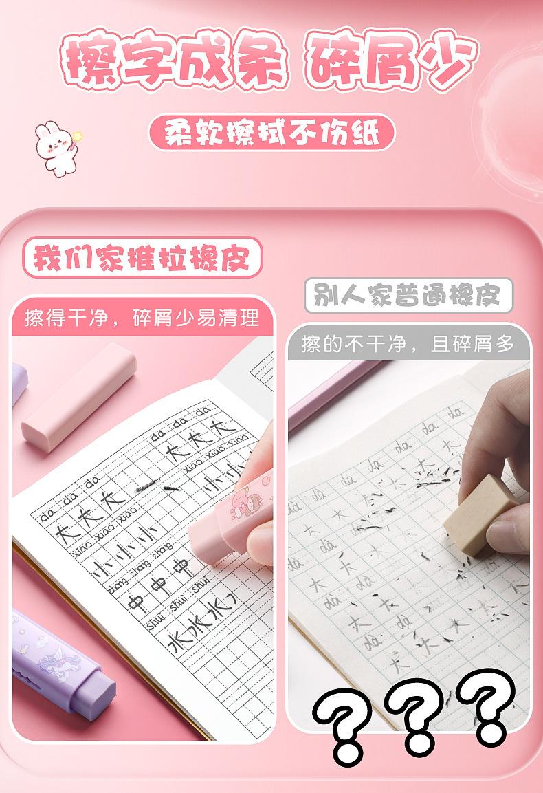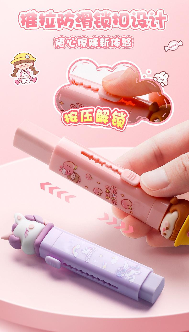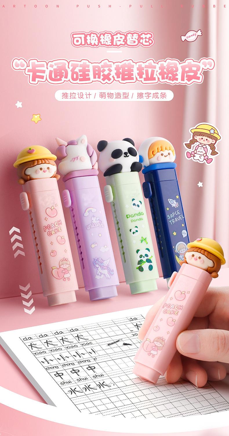 Goma de empujar y tirar para que los alumnos de primaria presionen como si fuera piel sin dejar marcas ni residuos, borrador de dibujos animados lindo