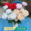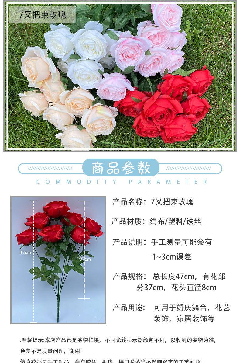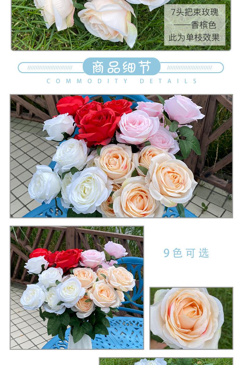 Ramo de rosas artificiales de 7 cabezas para bodas, salón de bodas, decoración de camino, pared de flores, arco de rosas occidentales, flores de seda