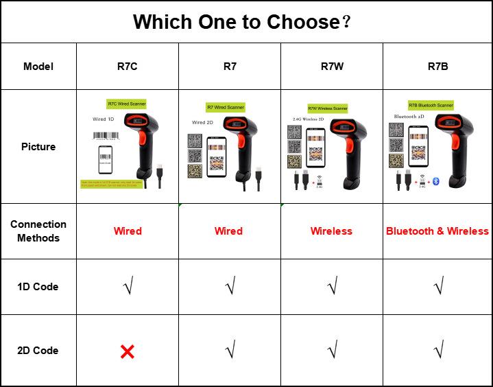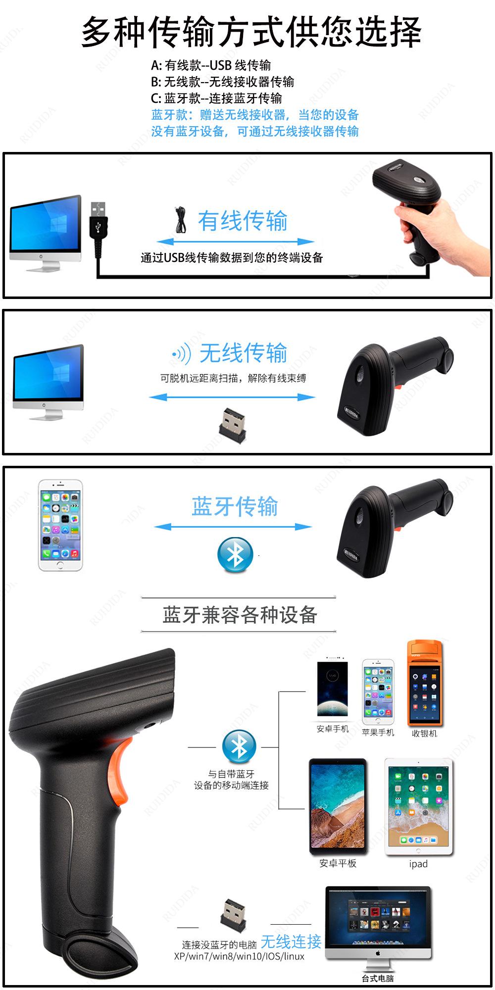 Escáner con cable 1D y 2D, lector de código de barras inalámbrico Bluetooth, para supermercados, cajeros de productos básicos, logística exprés, escaneo