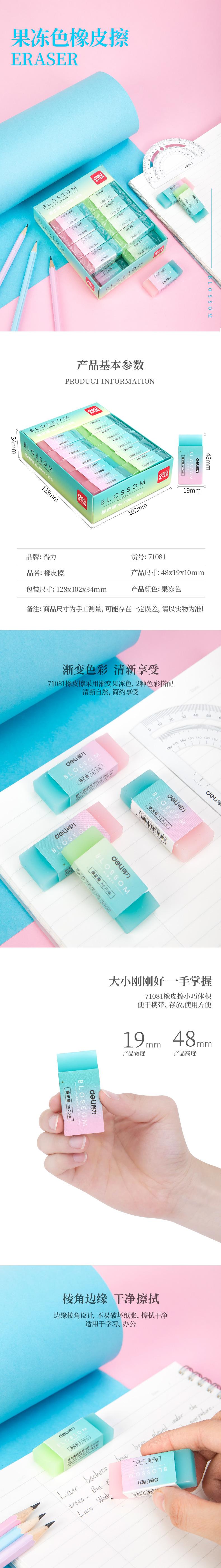 Deli 71081 Borrador translúcido de gelatina, ideal para dibujar, examinar, dibujar, dibujar, papelería para niños y estudiantes.