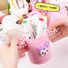 Lindo portalápices de escritorio con dibujos animados, decoración para escritorio de estudiante, caja de almacenamiento de papelería, cubo para bolígrafos, contenedor de almacenamiento de pinceles de maquillaje con forma de corazón para niña