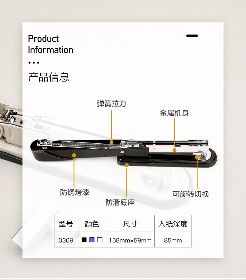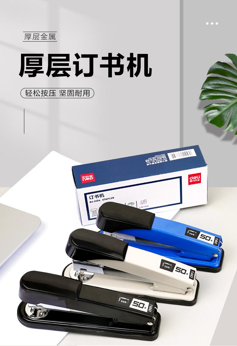 Deli/0314 white stapler, Deli/0314 black stapler, Deli/0314 blue stapler, [Free 1 box of 25 pages of nails] Wh...