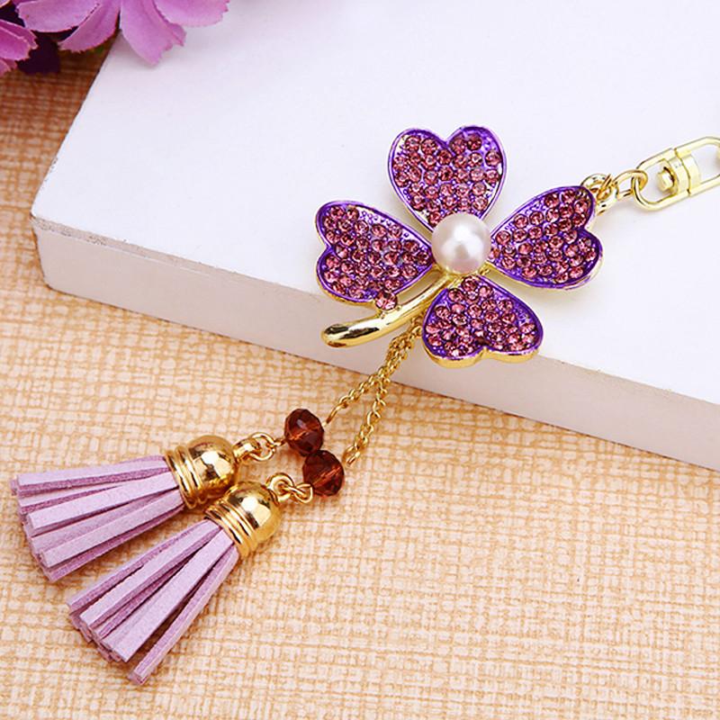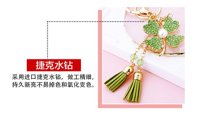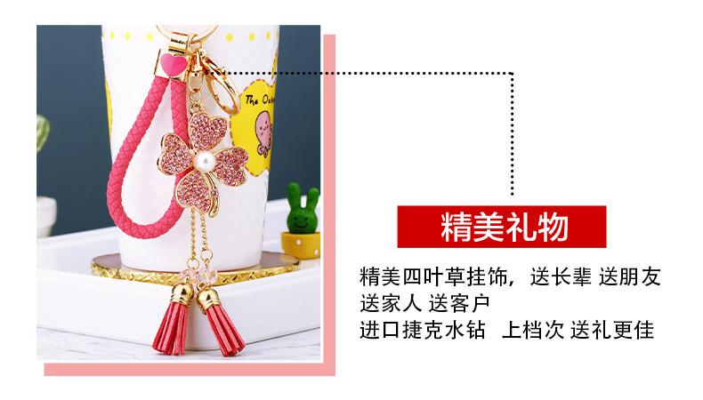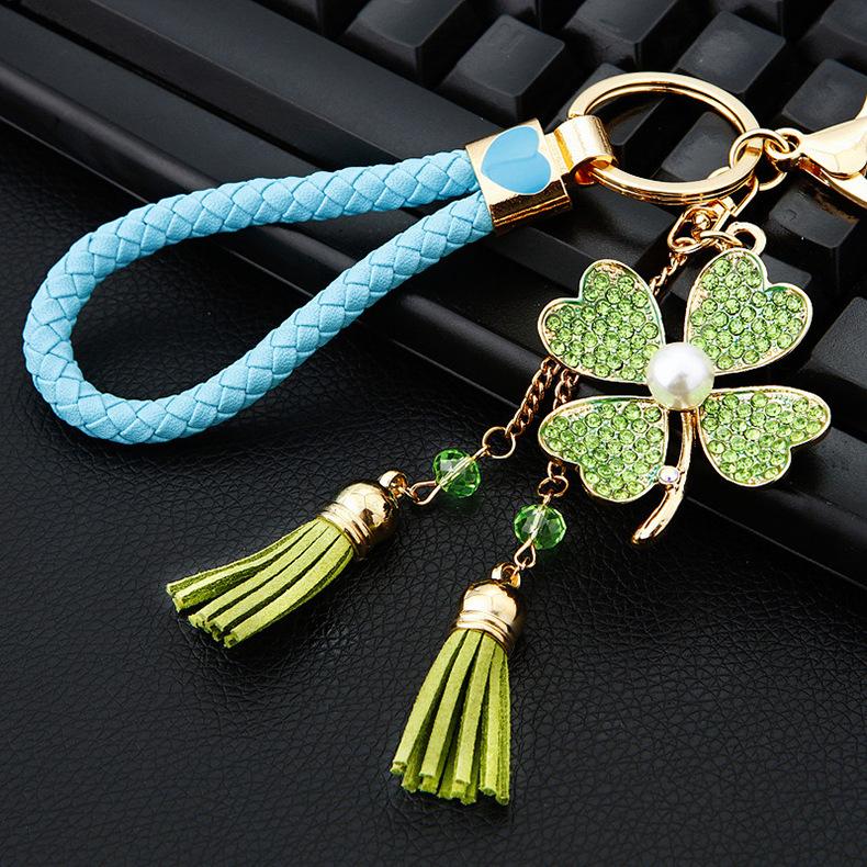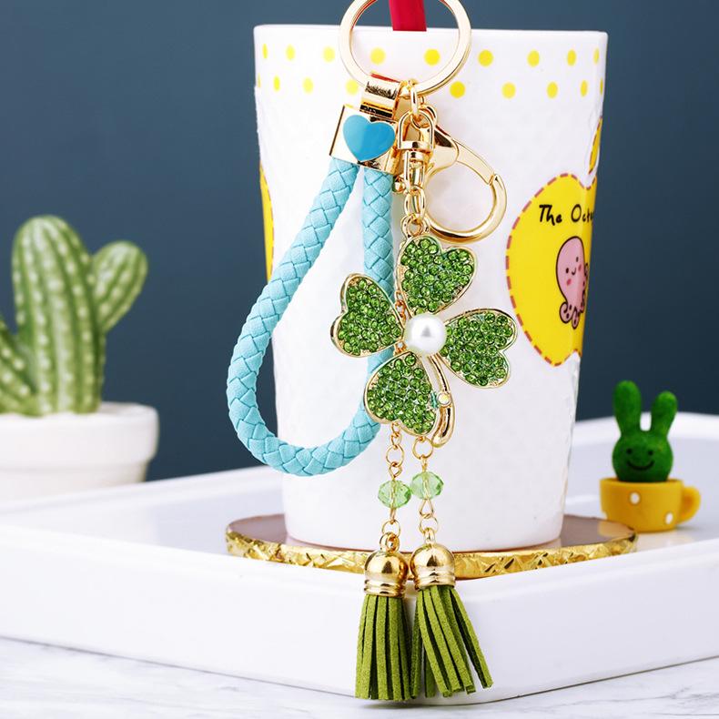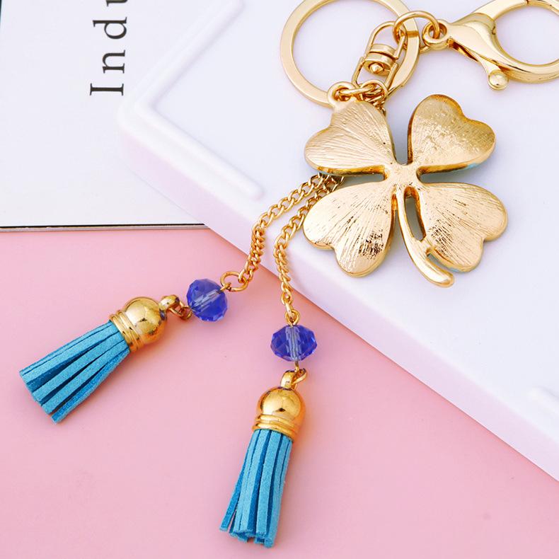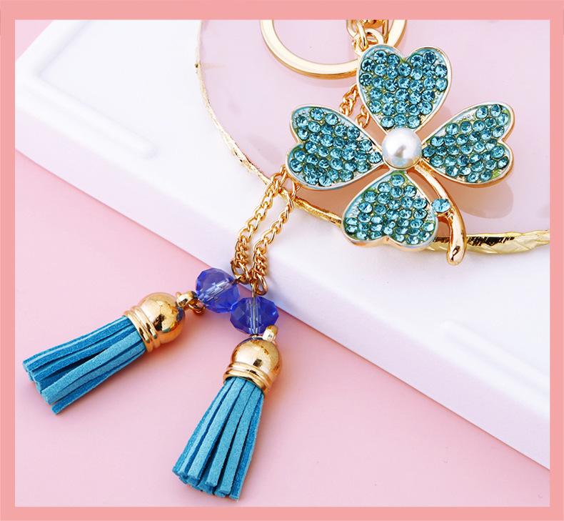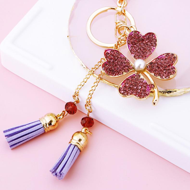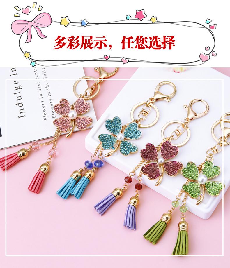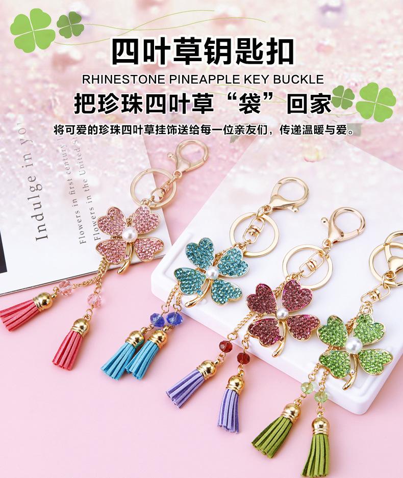 Compra Llavero de coche con borla de trébol de cuatro hojas incrustado de diamantes, metal, lindo, colgante para bolso de mujer, llavero de anillo, regalo creativo transfronterizo al por mayor en Joom.pro