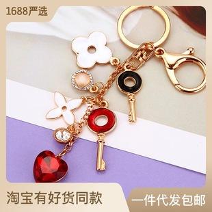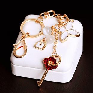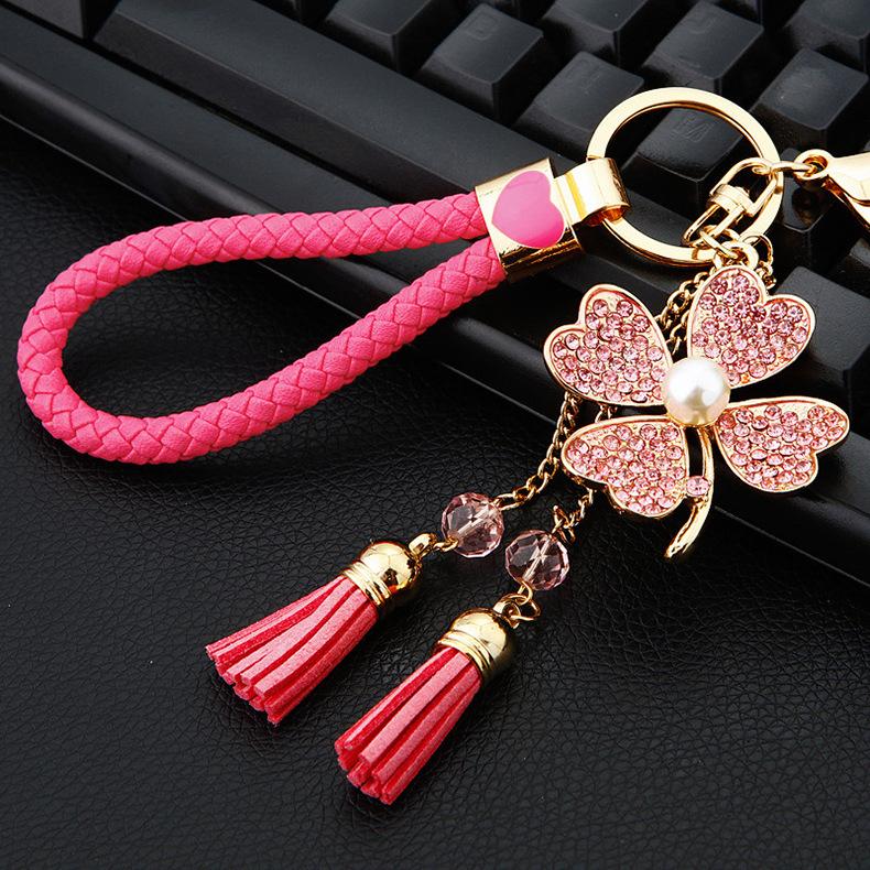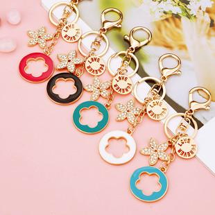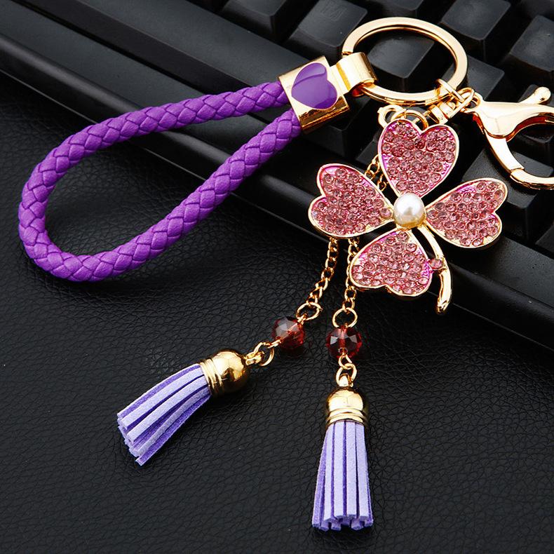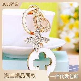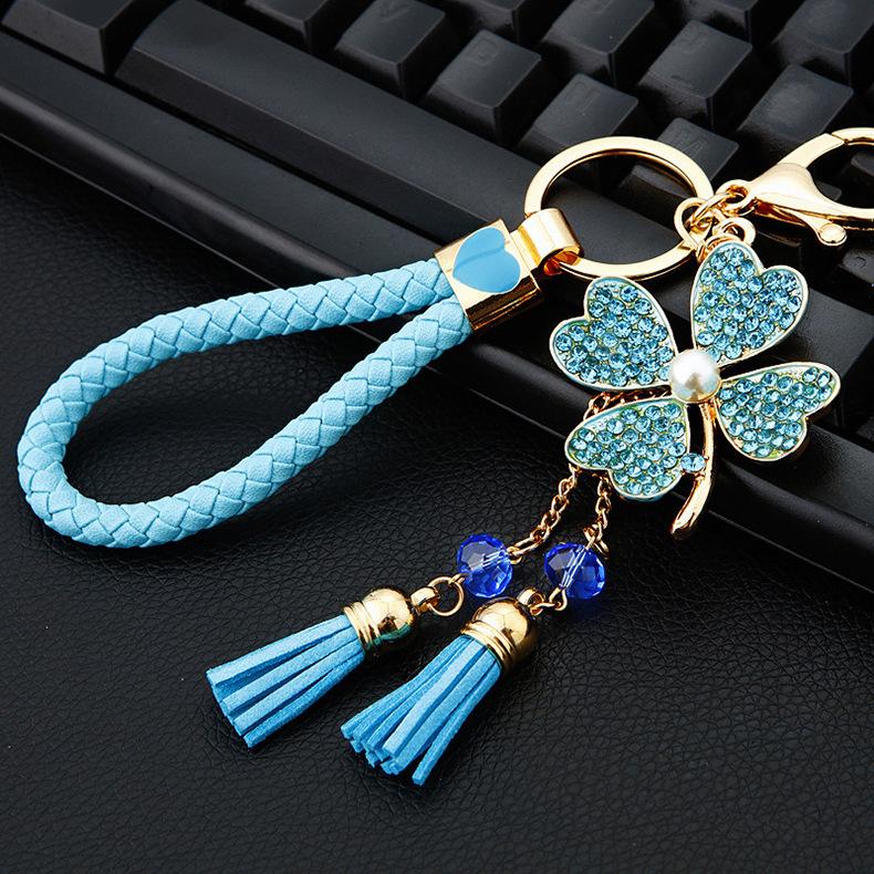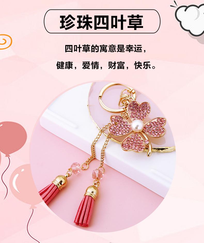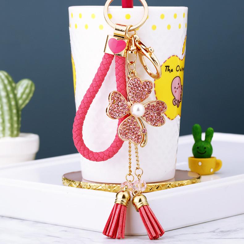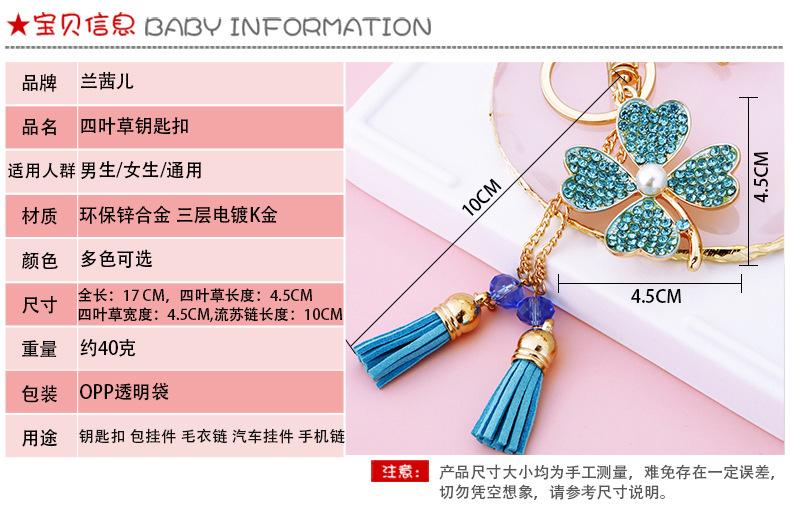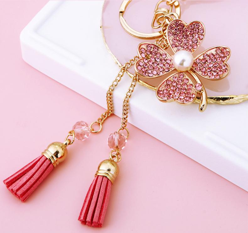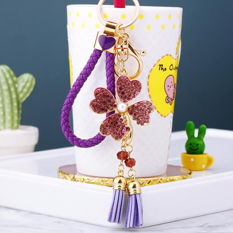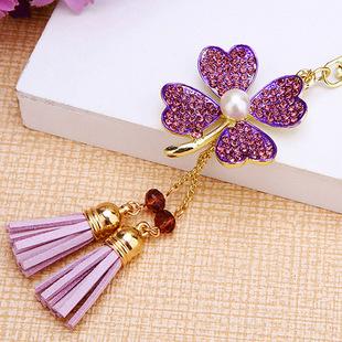 Compra Llavero de coche con borla de trébol de cuatro hojas incrustado de diamantes, metal, lindo, colgante para bolso de mujer, llavero de anillo, regalo creativo transfronterizo al por mayor en Joom.pro
