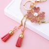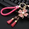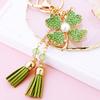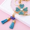 Llavero de coche con borla de trébol de cuatro hojas incrustado de diamantes, metal, lindo, colgante para bolso de mujer, llavero de anillo, regalo creativo transfronterizo