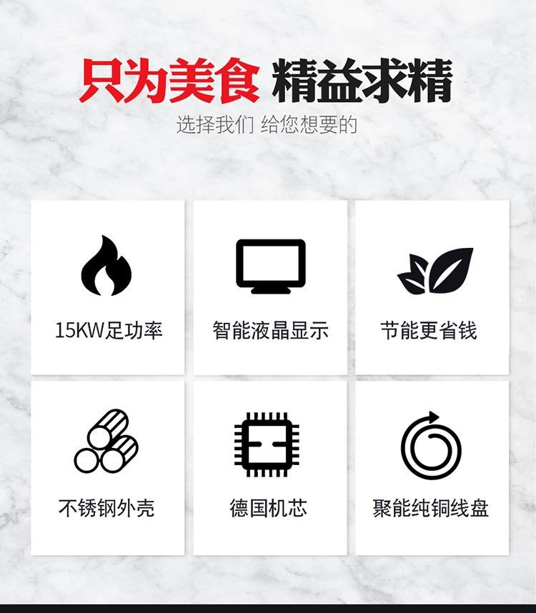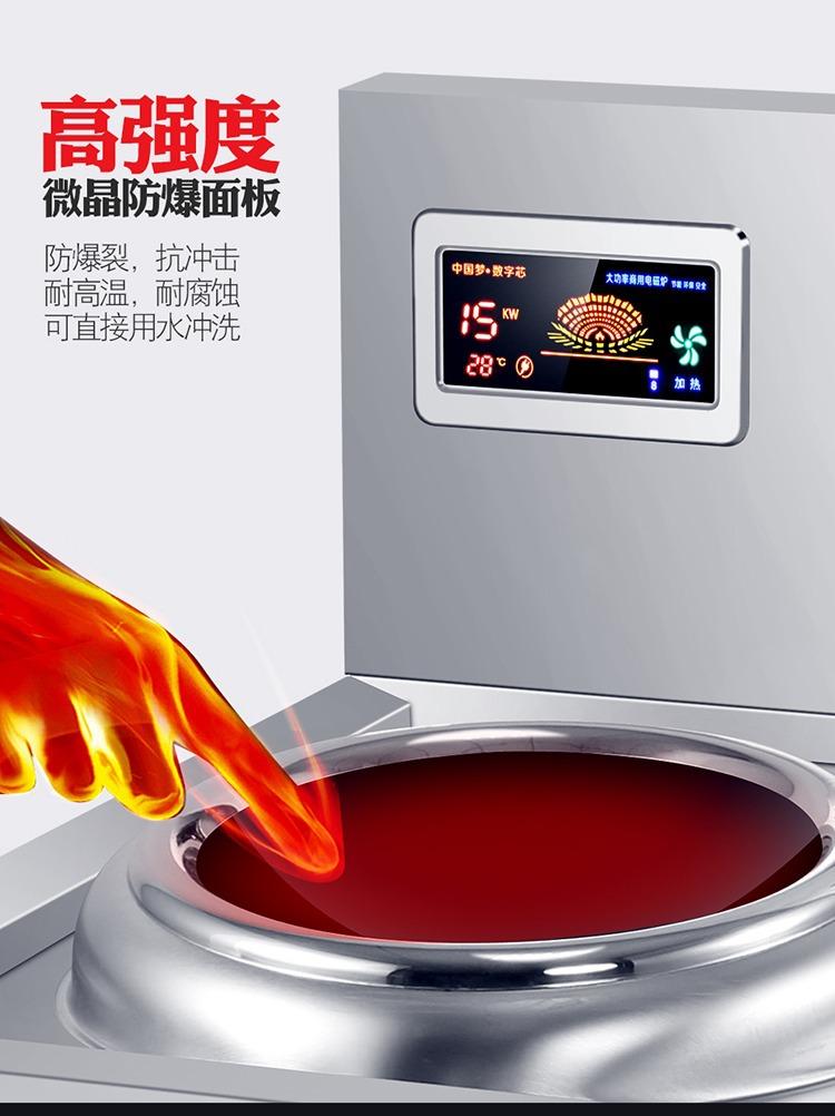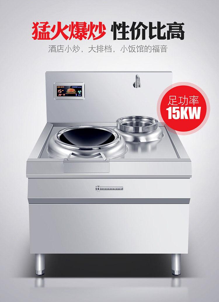 Cocina de inducción comercial de doble cabezal cóncava, gran freidora eléctrica, equipo de cocina de hotel, estufa eléctrica de alta potencia de 15KW