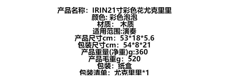 Ukelele IRIN21 pulgadas para principiantes, venta al por mayor, pequeño y colorido instrumento de guitarra.