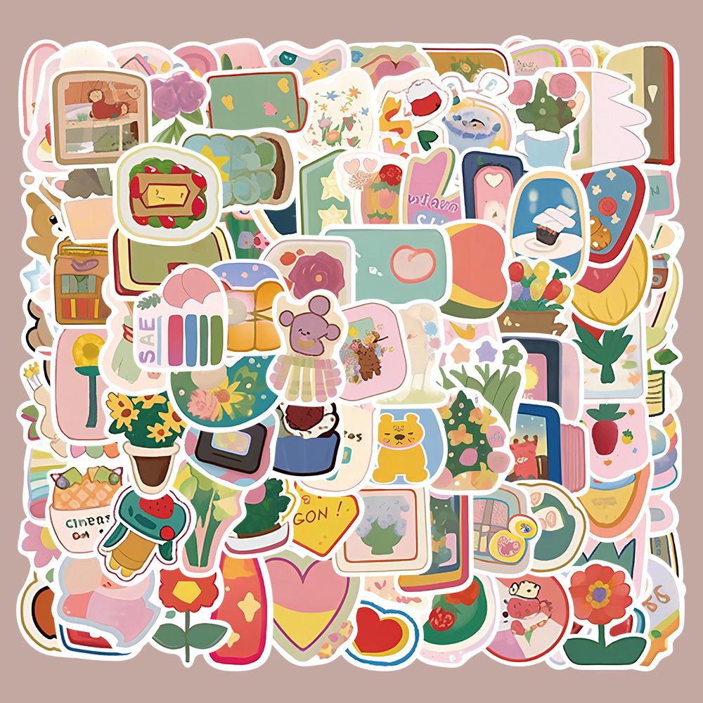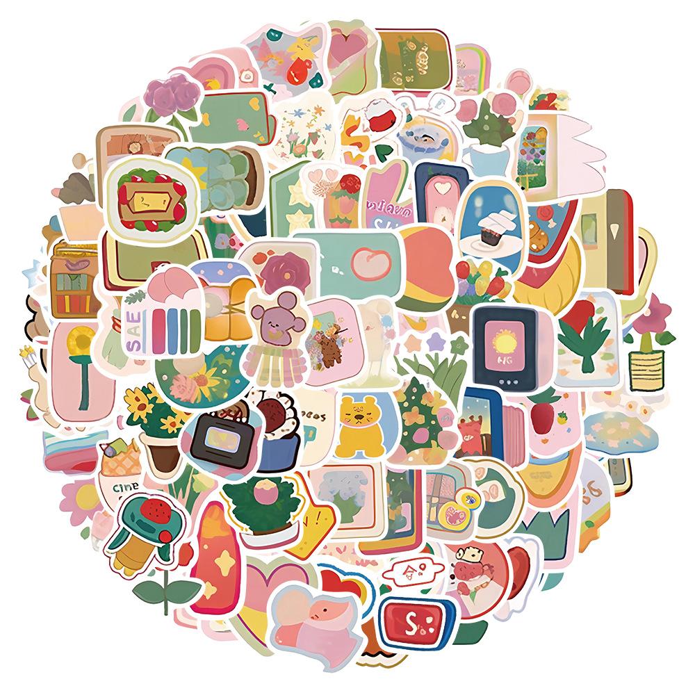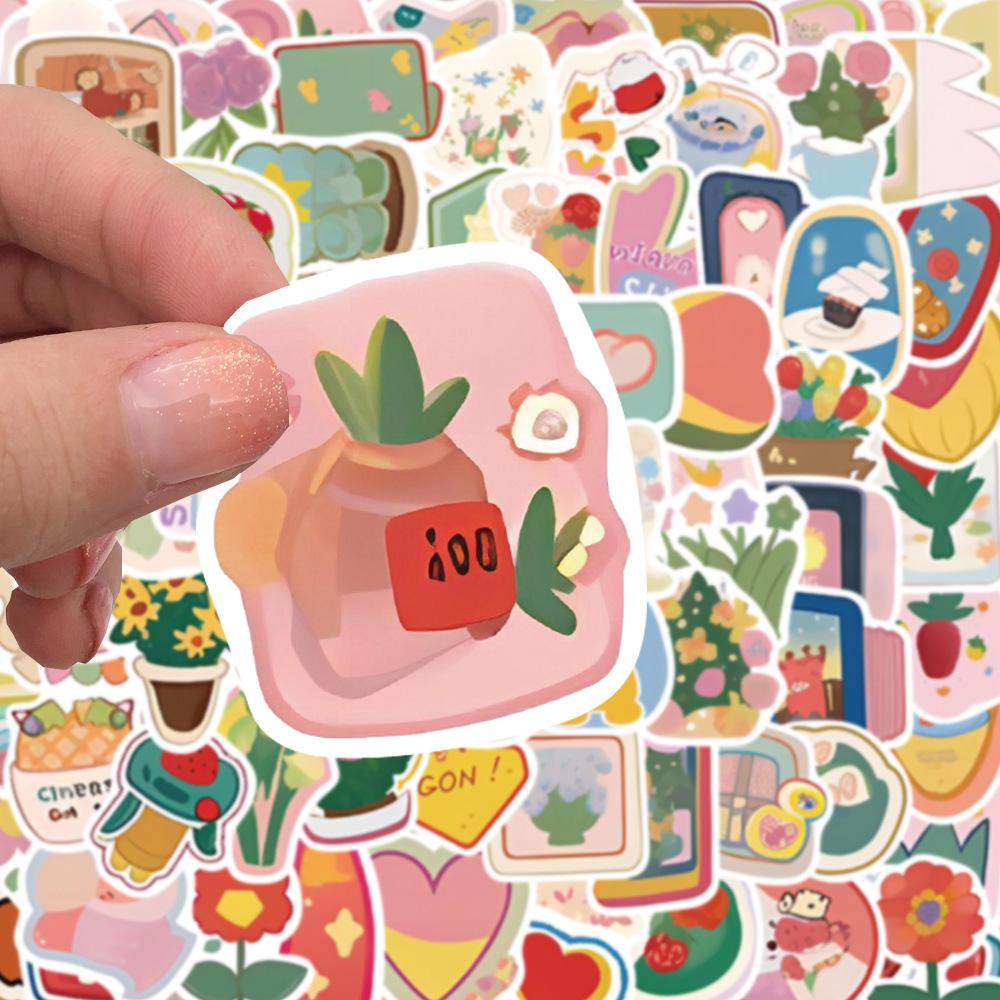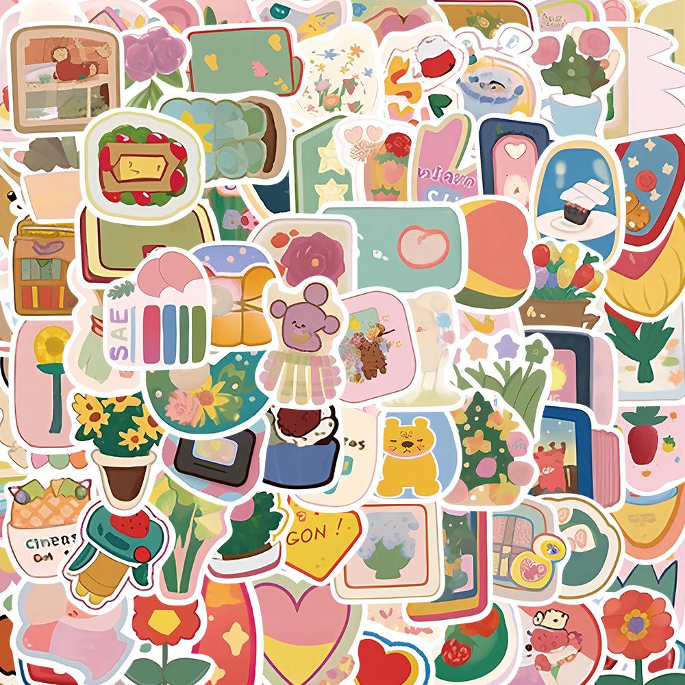 100 pegatinas de grafiti de acuarela pequeñas de dibujos animados, material para libro de mano, taza de agua, guitarra, funda de teléfono, pegatinas decorativas impermeables