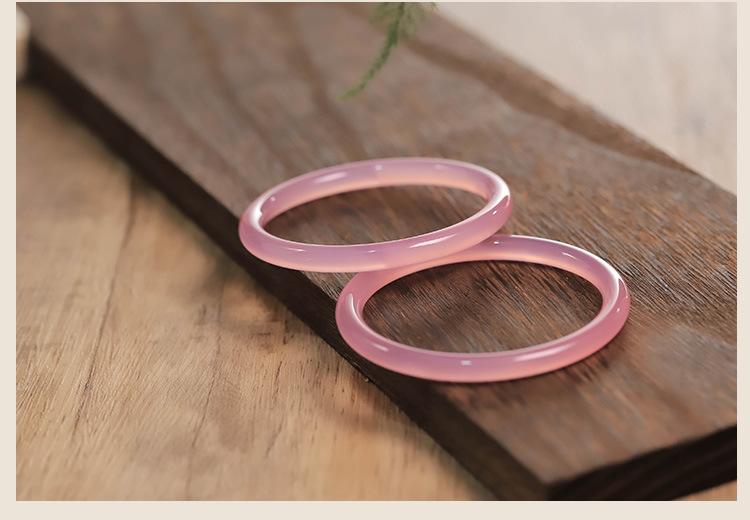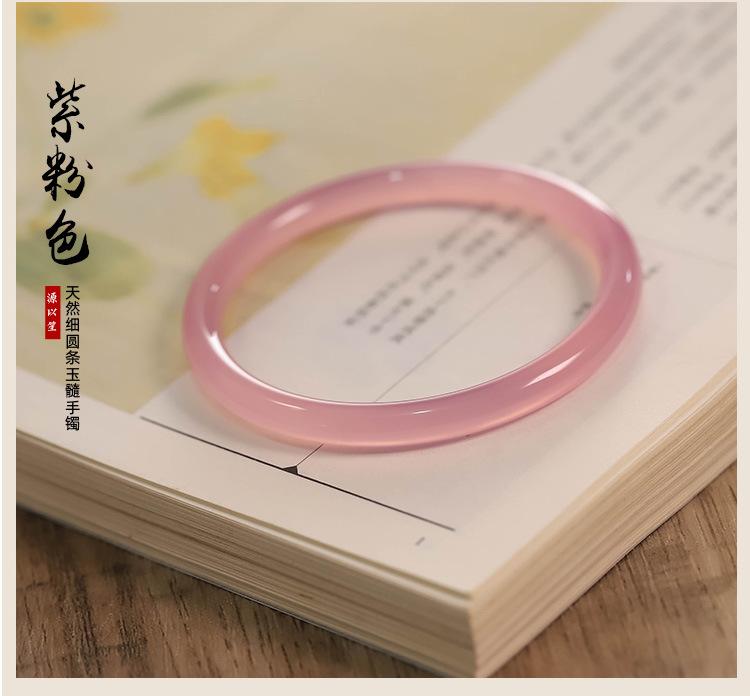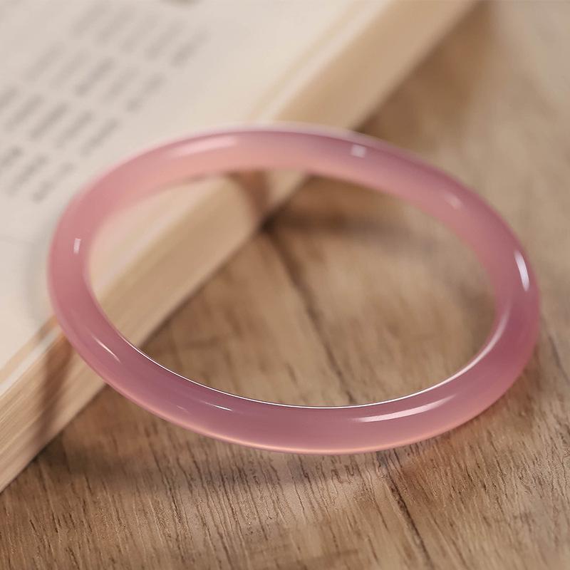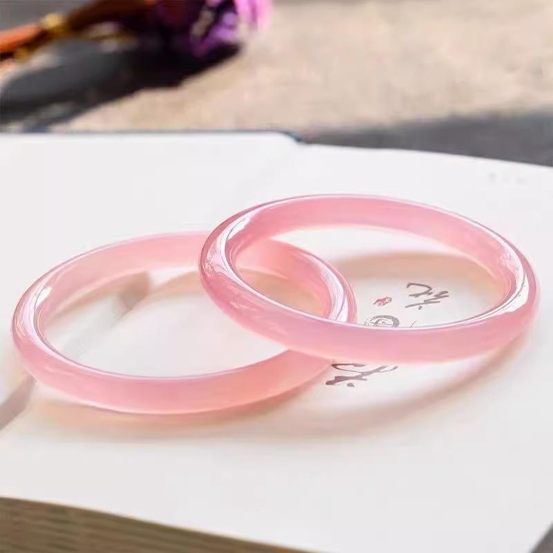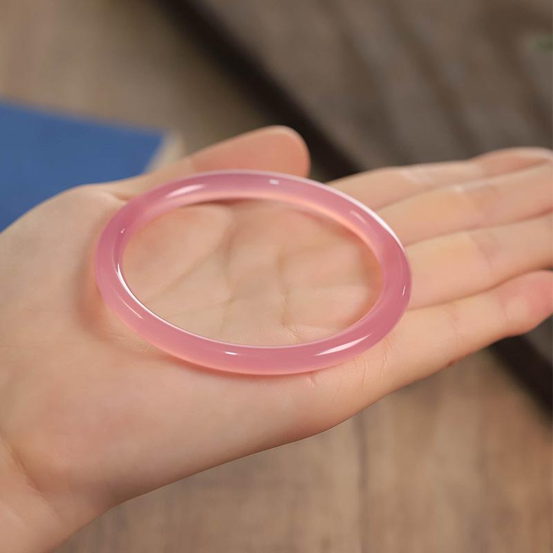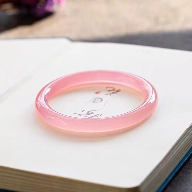 Pulsera de ágata calcedonia rosa hielo natural 6mm pulsera de belleza femenina barra redonda pulsera tintineante pulsera de jade transparente de alto hielo regalo