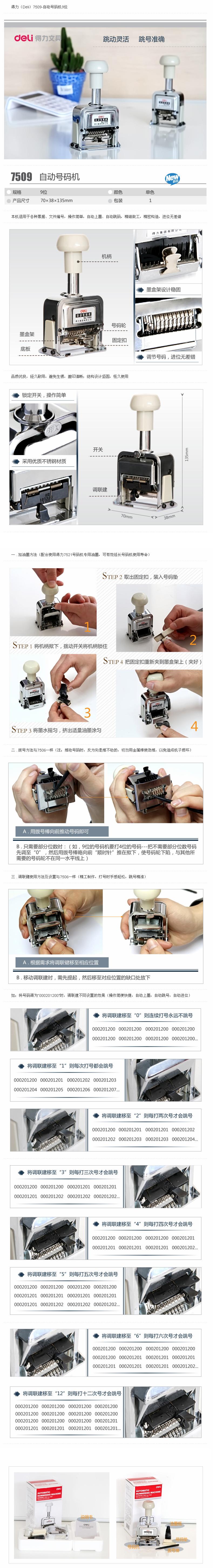Máquina numeradora automática Deli Stationery 7509, máquina numeradora de páginas con impresión de fecha de 9 dígitos, máquina codificadora financiera bancaria