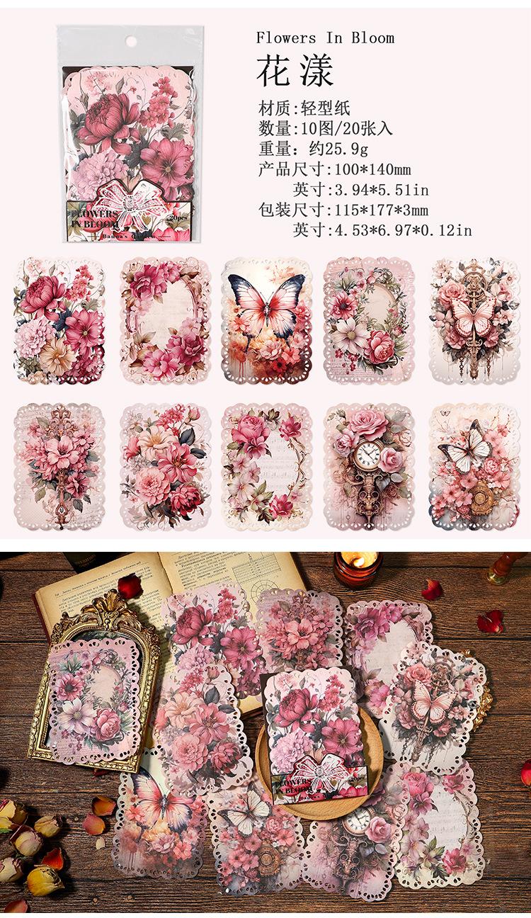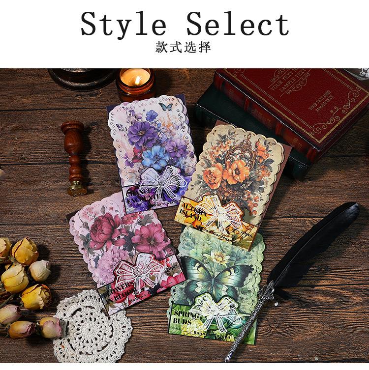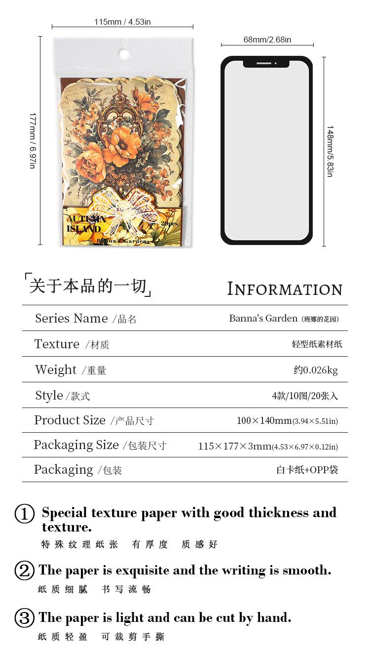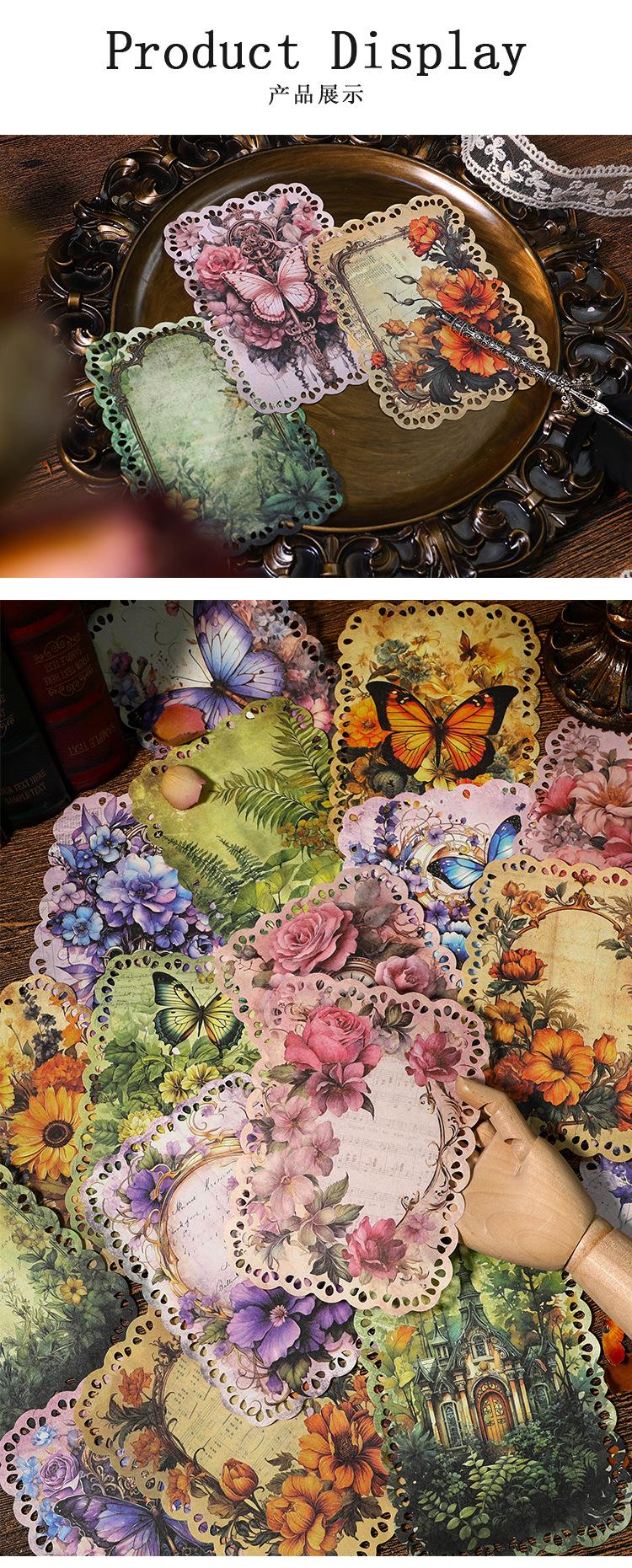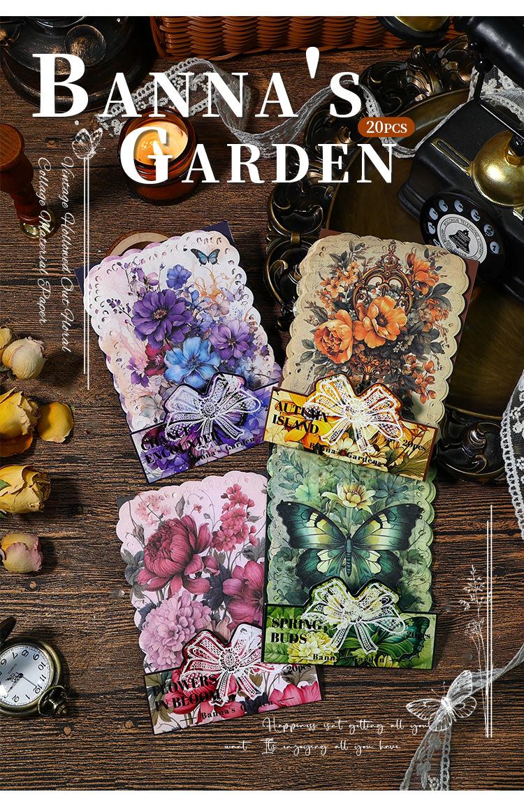 Papel de material para diario de la serie Jardín de Banna del bosque antiguo transfronterizo, planta retro americana, flor, mariposa, diario