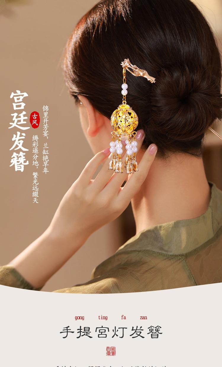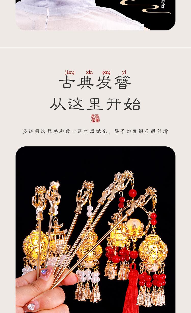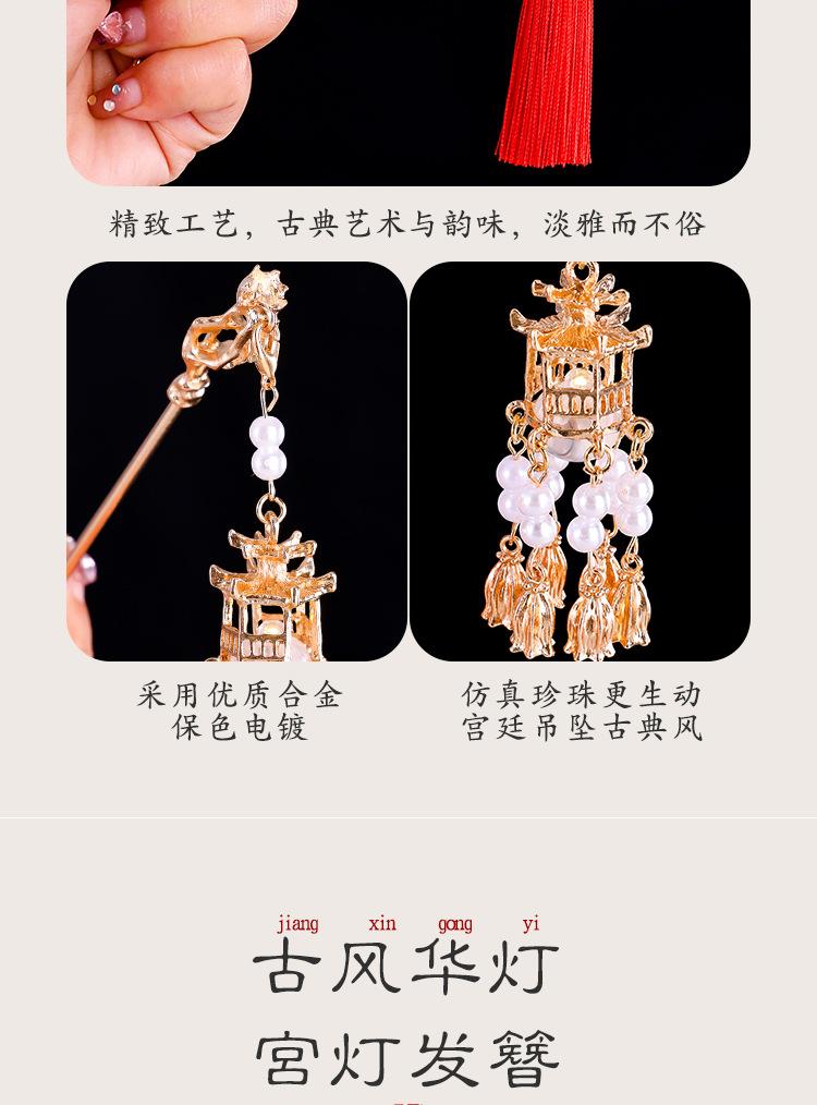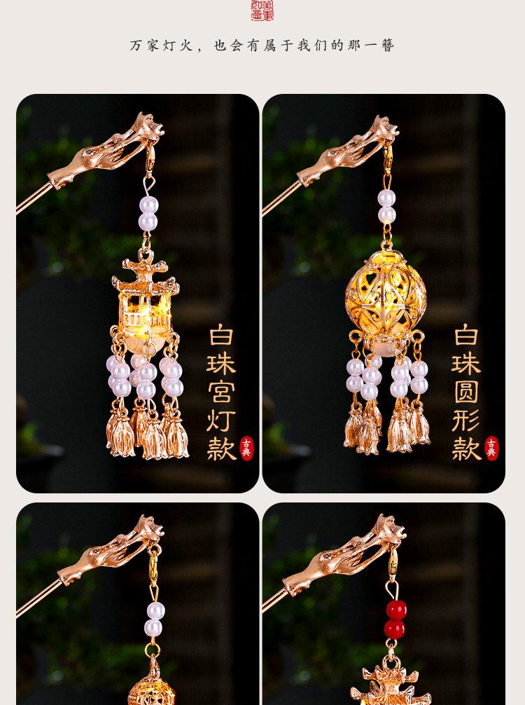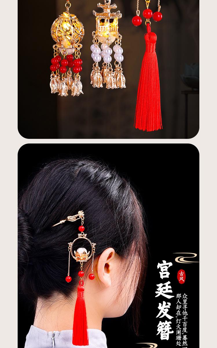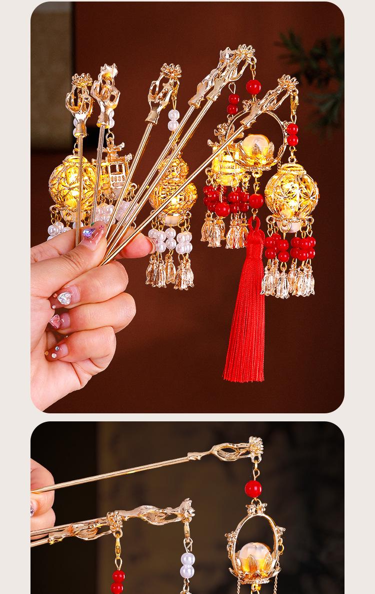 Horquilla de linterna de nuevo estilo chino de alta calidad, estilo antiguo, paso a paso, con cheongsam, Hanfu, regalo del Festival de Primavera, tocado, horquilla para el cabello