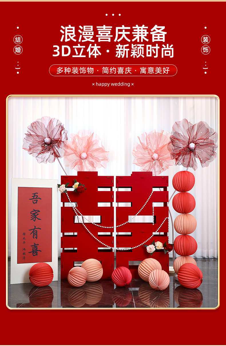 Sala de bodas tridimensional para hombres y mujeres, decoración de dormitorio cuadrado, escena de sala de estar de bodas, decoración de boda doble, boda