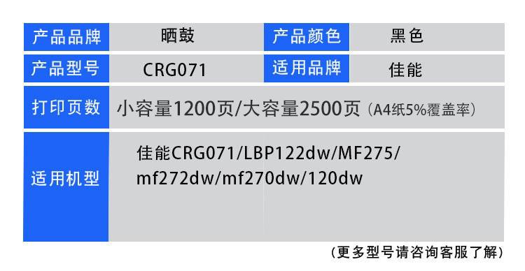 Canon crg071/lbp122dw/120dw/mf270dw/mf272dw/lbp122dw