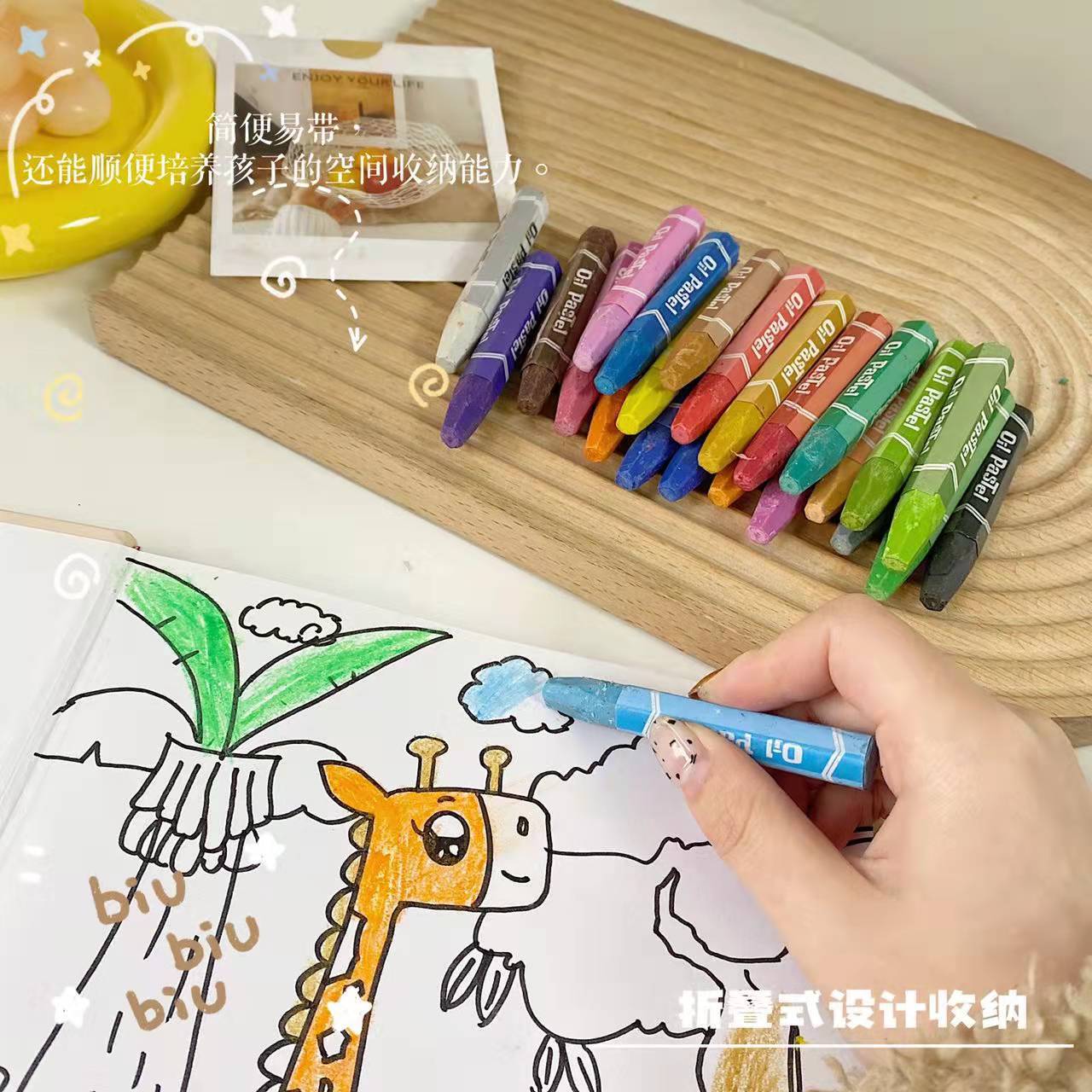 Crayones: El contenido de polvo de color es fácil de colorear, el lápiz se desliza suavemente y colorear es fácil y sin esfuerzo.