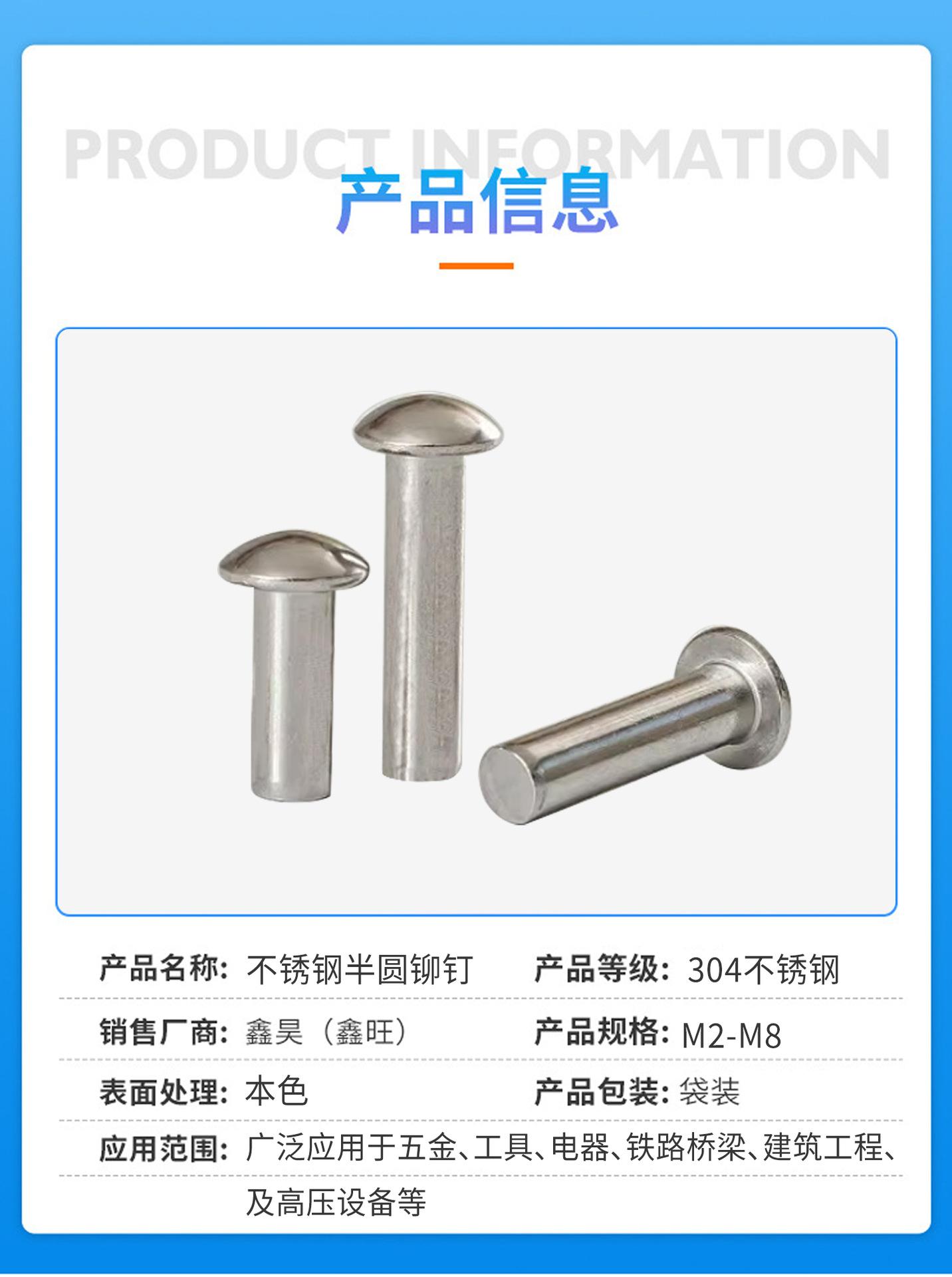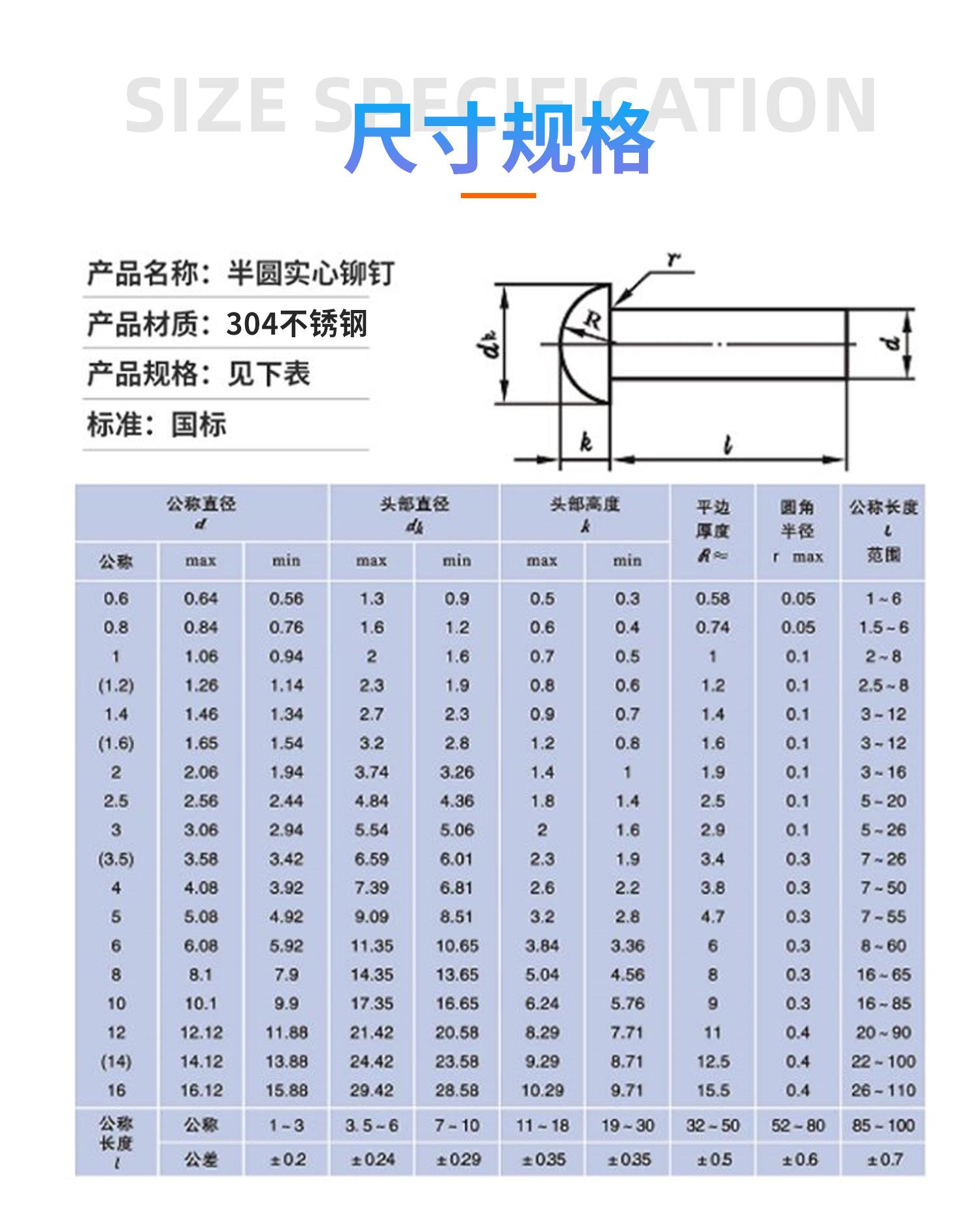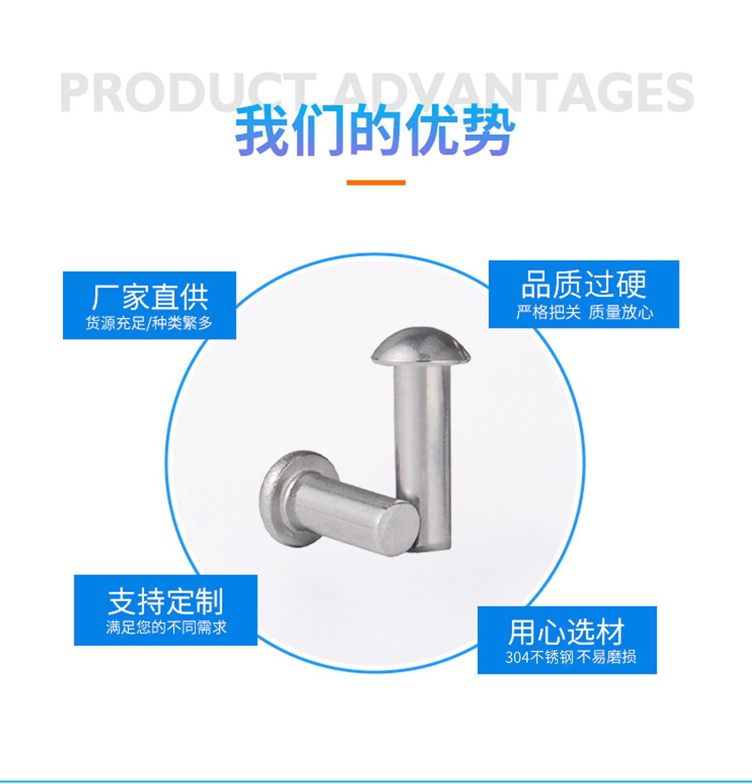 Remaches Sólidos de Acero Inoxidable de Cabeza Semiredonda, Remaches Esféricos Gb867 Estándar Nacional Universal 304 Remachado Fabricante Especial Mayorista