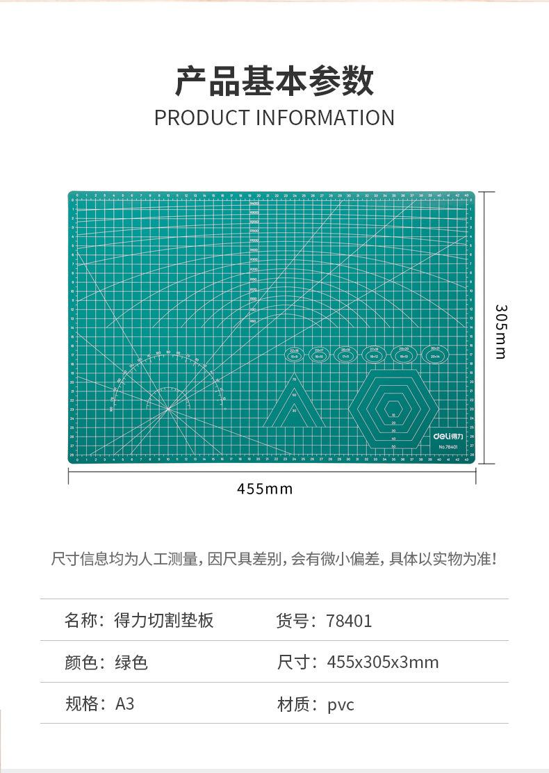 Almohadilla de Corte A3 Deli, Tabla de Grabado Manual de Escritorio, Almohadilla Anticorte, Tabla de Corte de PVC de Doble Cara, Reutilizable para Cortar