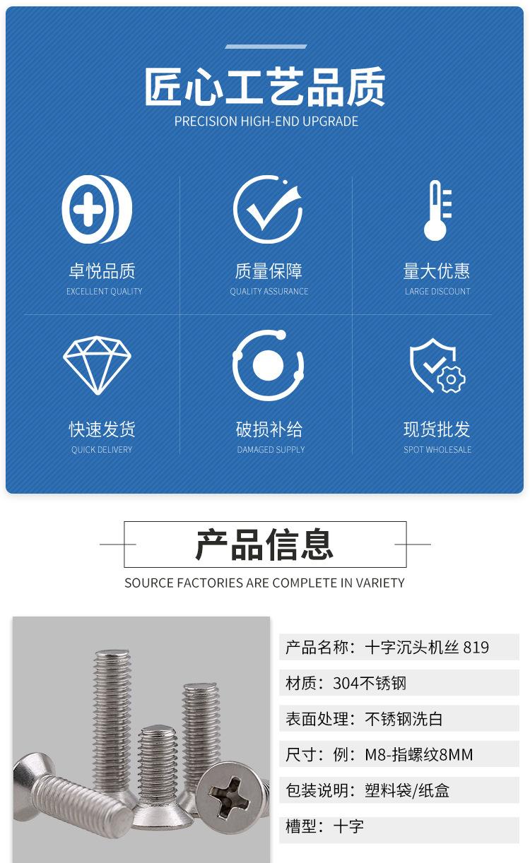 Tornillo de cabeza avellanada de acero inoxidable KM cabeza avellanada cruz máquina alambre 304 acero inoxidable cabeza plana tornillo perno m3m4 m5m6