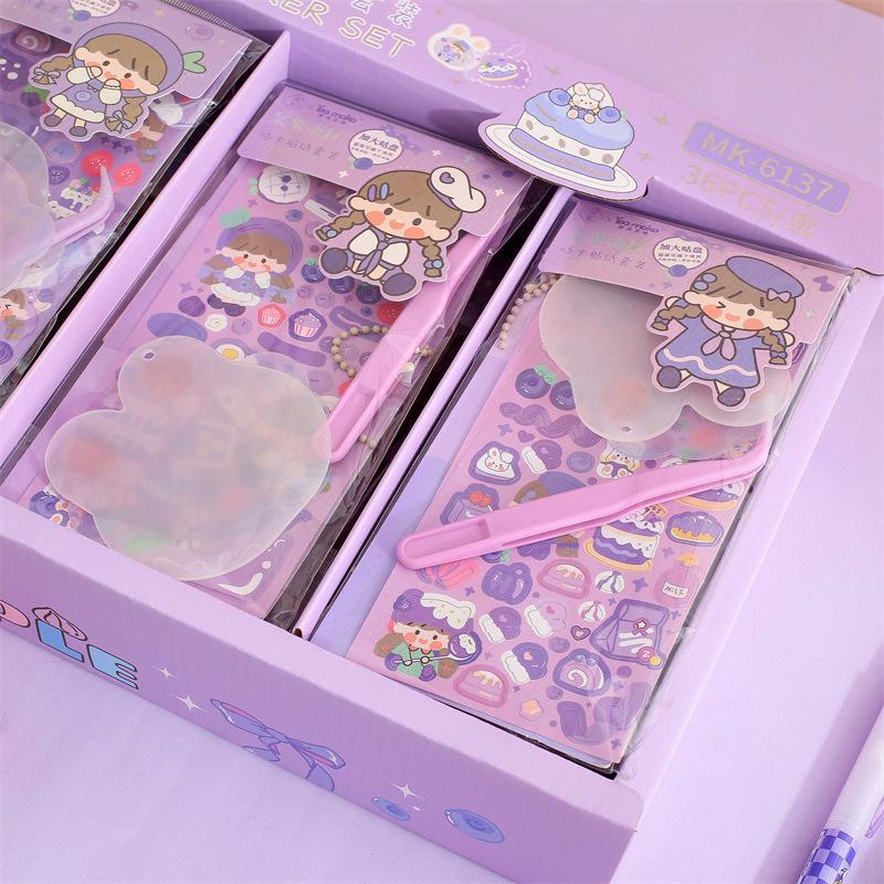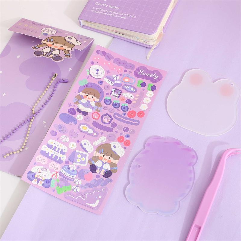 Juego de pegatinas de tarjeta Moke Goo, pegatinas moradas de dibujos animados, pegatinas para estudiantes, modelo DIY hecho a mano, placa Goo, pinzas para cuentas manuales