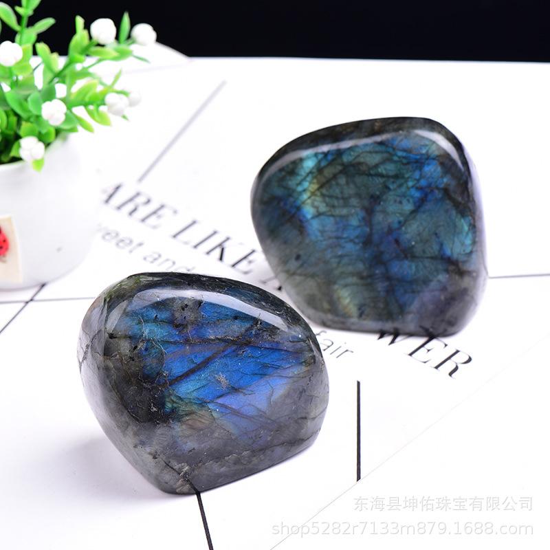 Piedra de feldespato natural de gran tamaño, pulida, azul, piedra lunar, con adornos para el hogar, escritorio y oficina, fabricantes al por mayor
