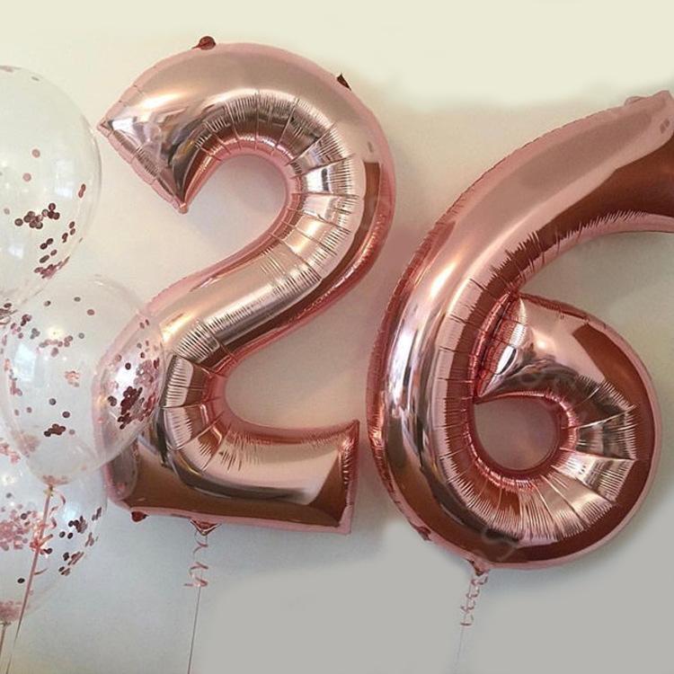 Globo de aluminio digital dorado rosa de 32 pulgadas, versión delgada de imitación estadounidense, para decoración de fiestas de bodas y cumpleaños de 0 a 9 años.
