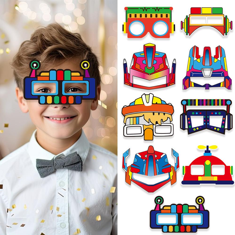 Juego de 9 gafas de papel con diseño de robot de Amazon, suministros de decoración para fiestas de cumpleaños infantiles, marco de gafas de dibujos animados