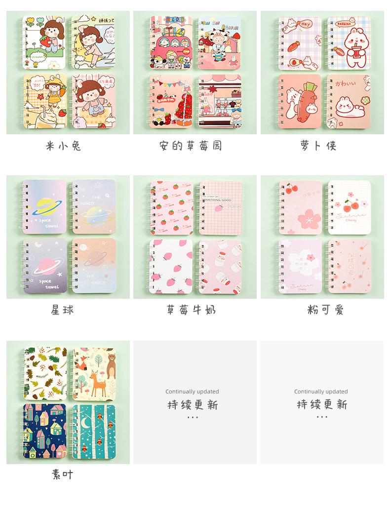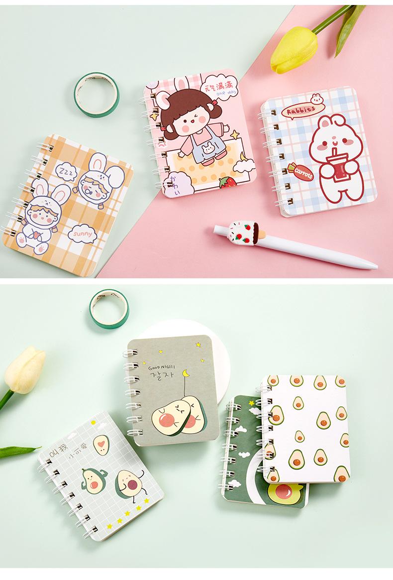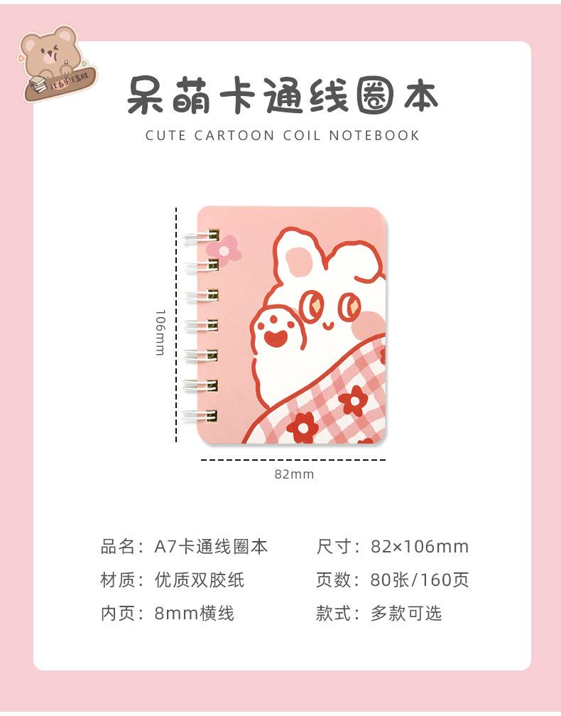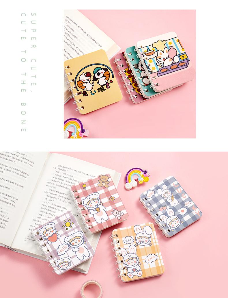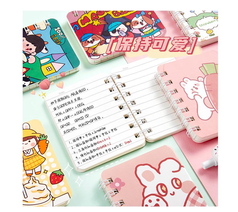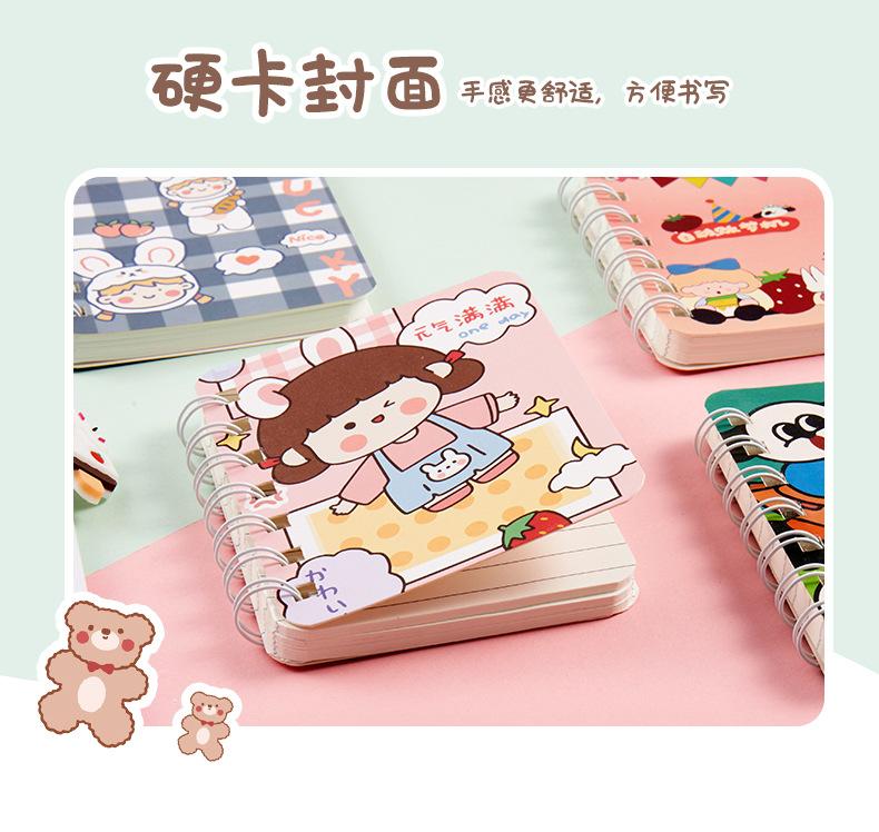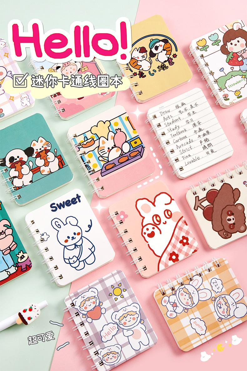 Libreta de espiral de dibujos animados A7 de gran valor de color, tamaño pequeño, libreta enrollable portátil, papelería para estudiantes, minilibro