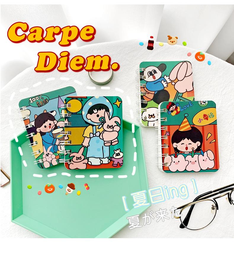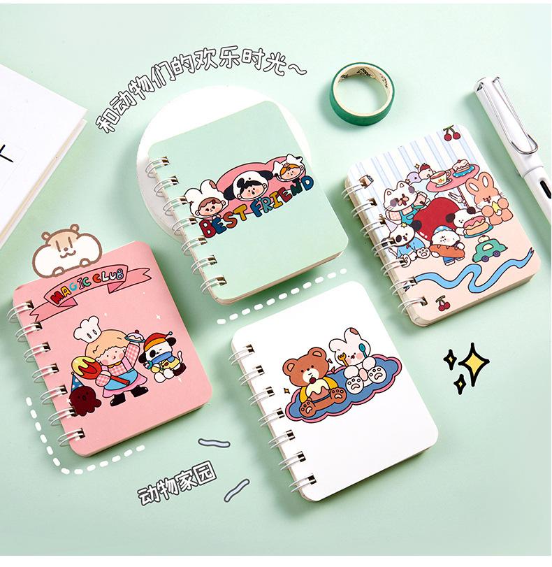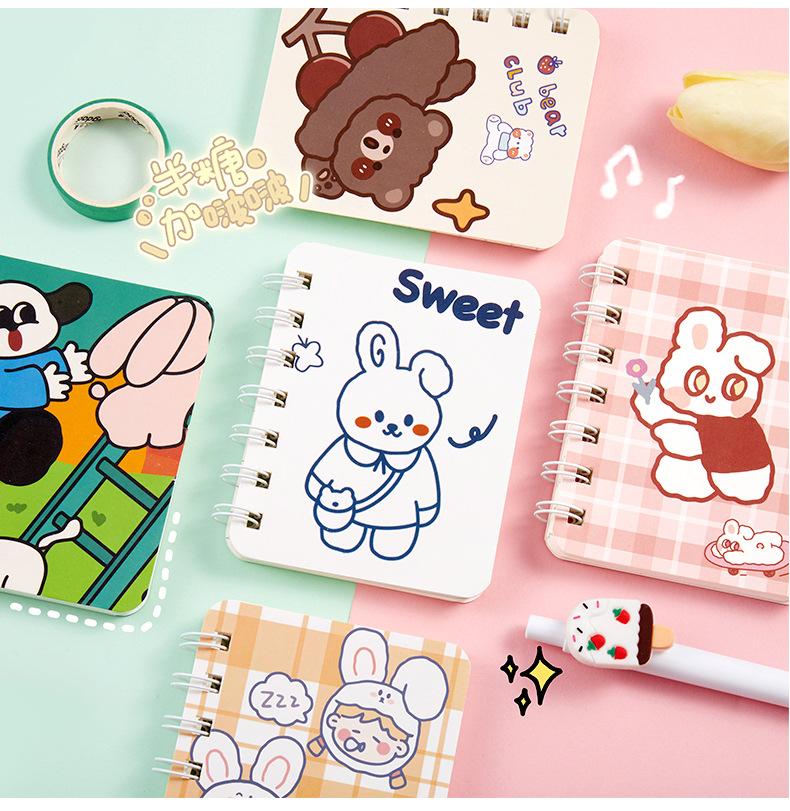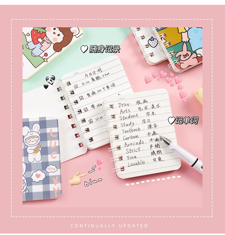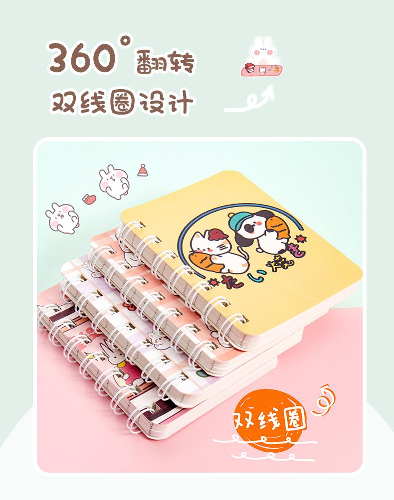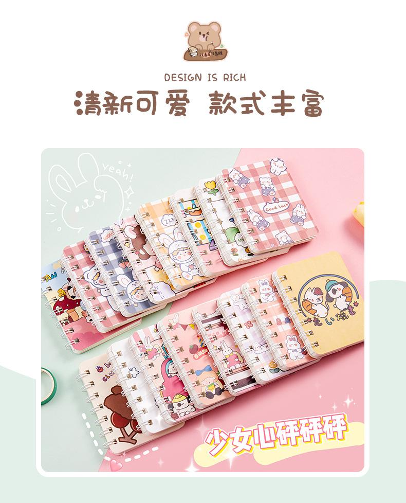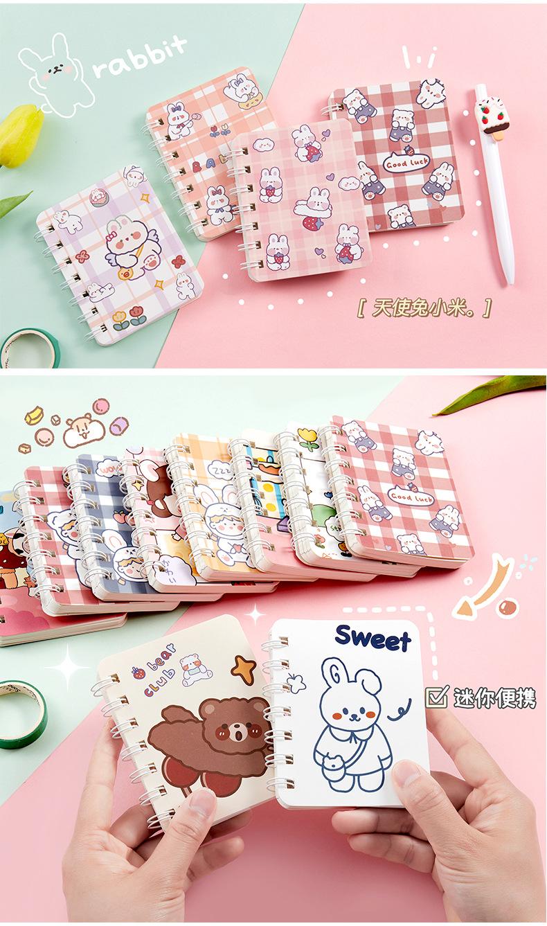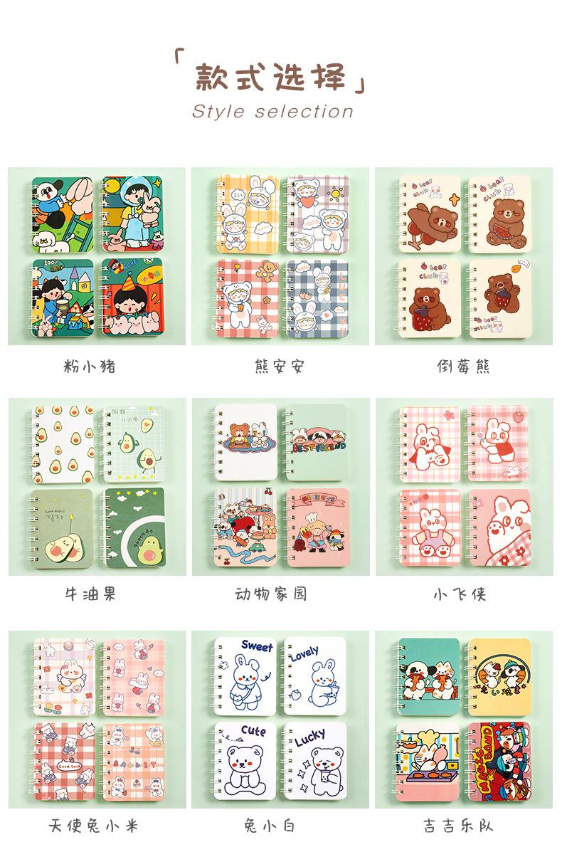 Libreta de espiral de dibujos animados A7 de gran valor de color, tamaño pequeño, libreta enrollable portátil, papelería para estudiantes, minilibro