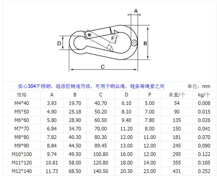 Mosquetón con hebilla de resorte de acero inoxidable 304, hebilla de seguridad, llavero, hebilla de calabaza, tuerca, resorte con hebilla de anilla, cadena para perro, hebilla