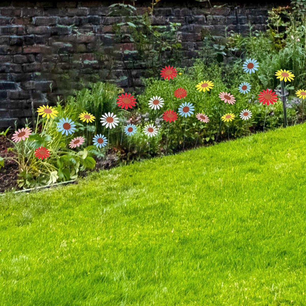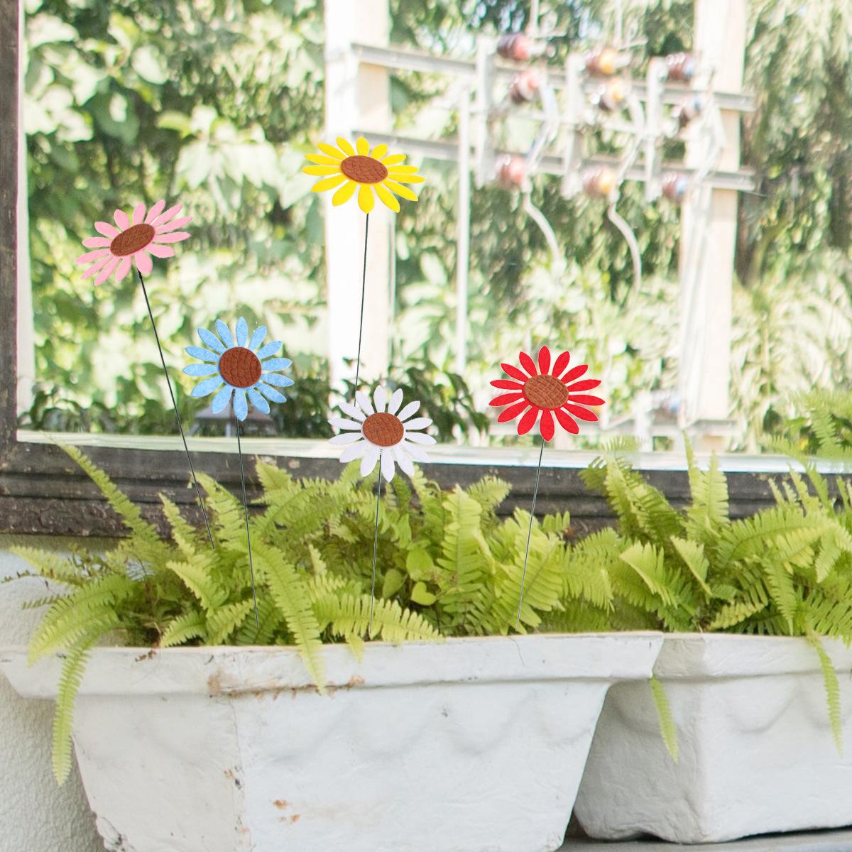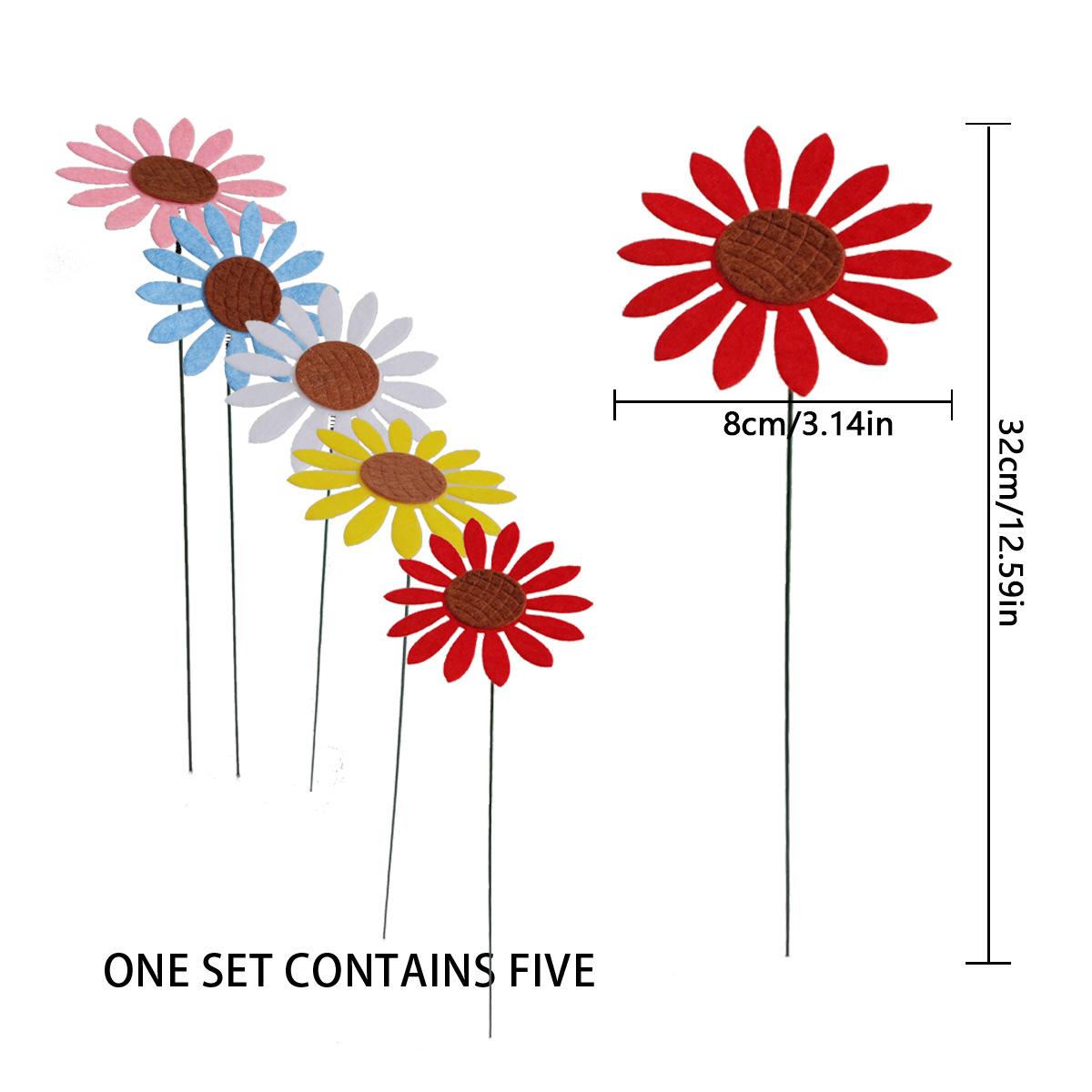 Nombre: Estacas decorativas de jardín de girasolMaterial: tela no tejida + alambre de hierroEmbalaje: 5 piezas, tamaño del embalaje 13*40*3cmPeso: 30 g