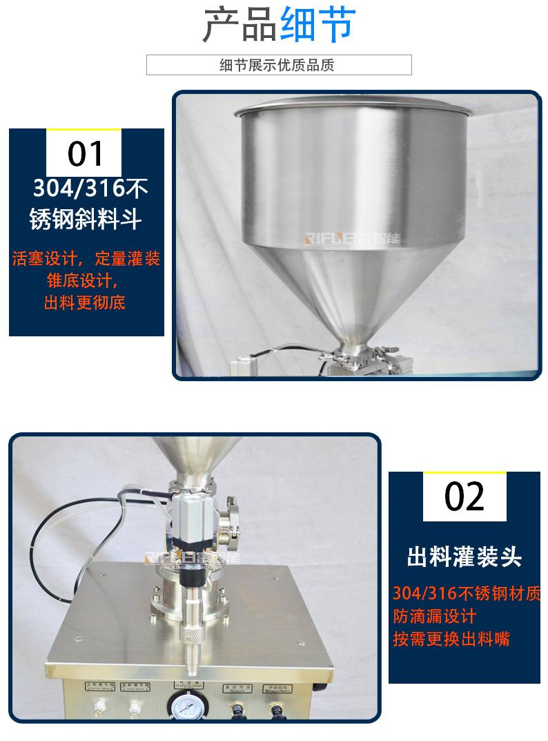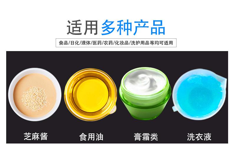 Máquina llenadora de pastas y salsas, máquina llenadora de líquidos (llenado de materiales con buena fluidez como agua mineral, aceite esencial, jugo, bebidas, té de hierbas, licor, vinagre blanco, salsa de soja, así como llenado de materiales viscosos como salsa de chile, salsa de pimienta picada, mermelada, pasta, miel, jarabe, champú, jabón de manos, detergente, aceite de motor, aceite lubricante, etc.)