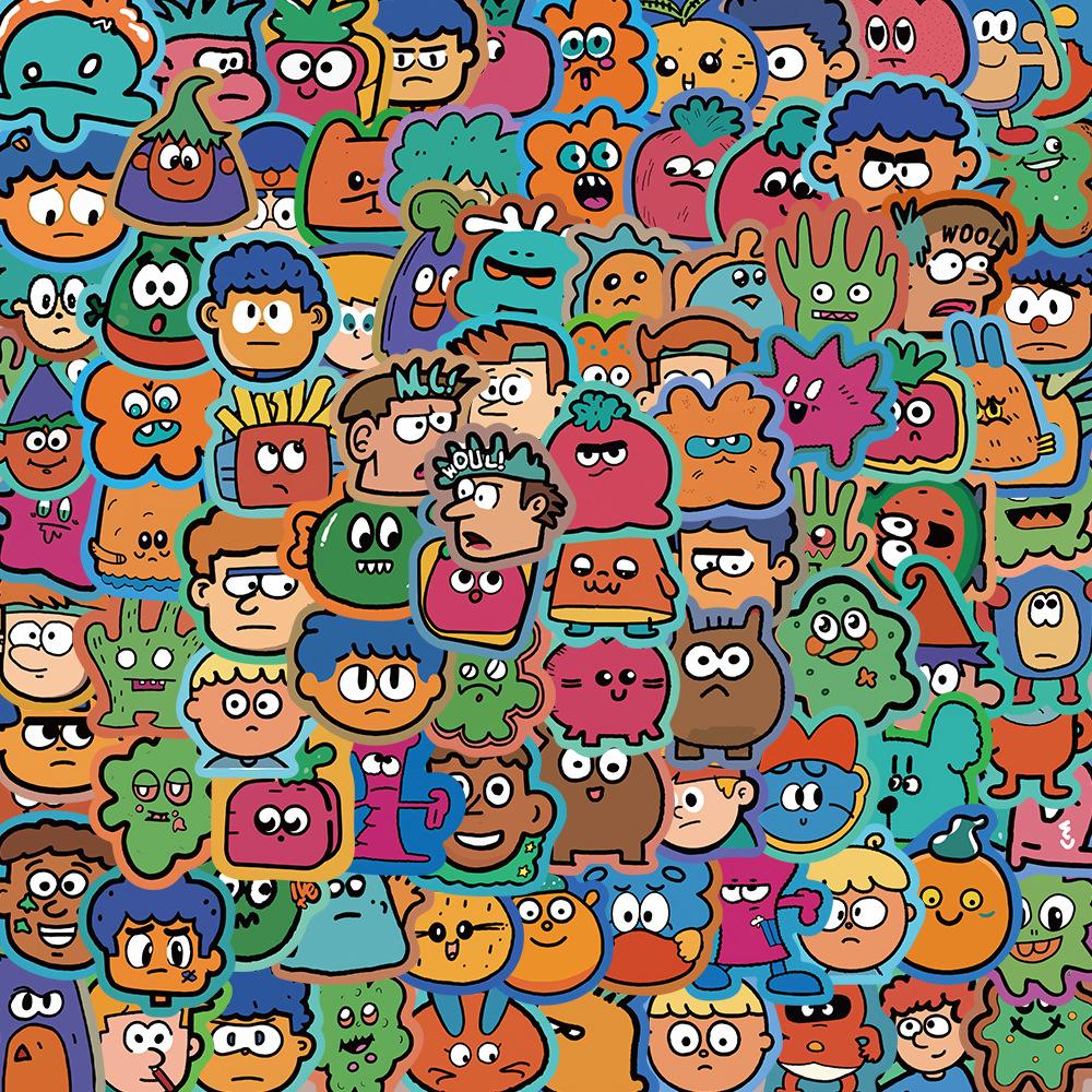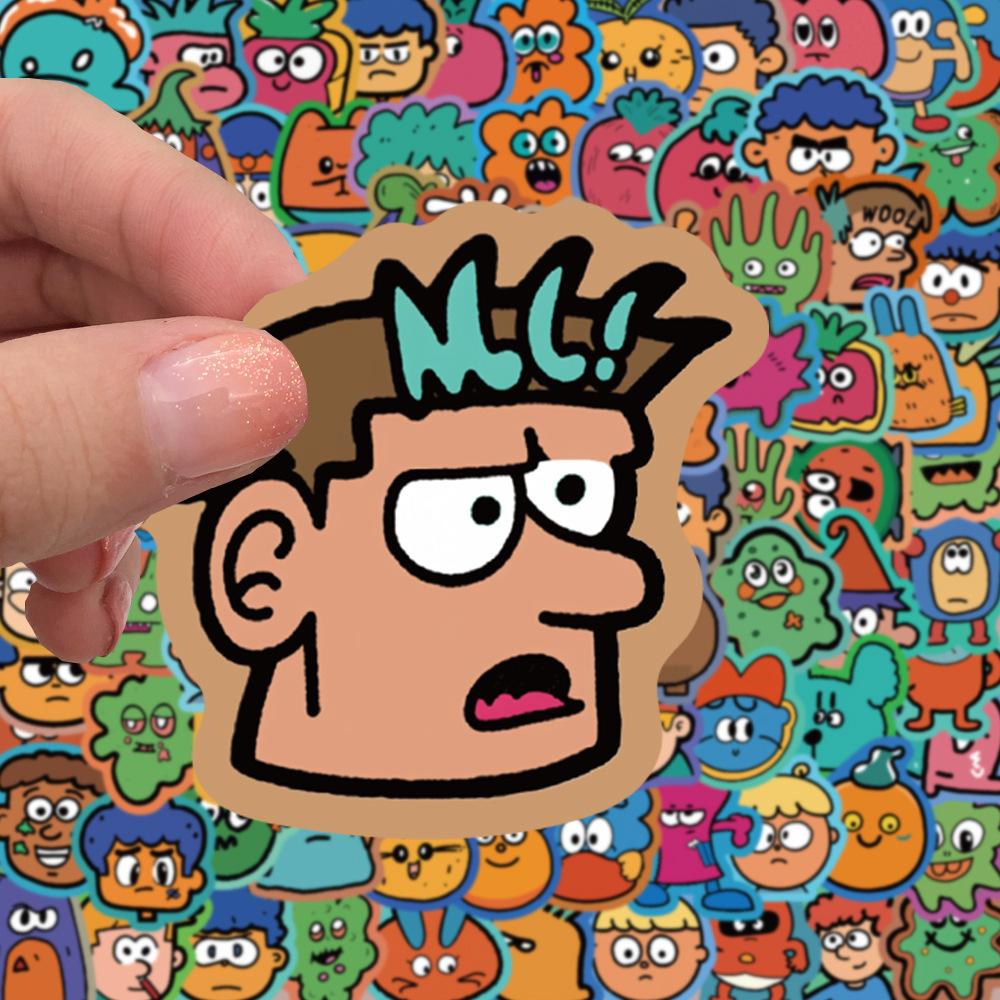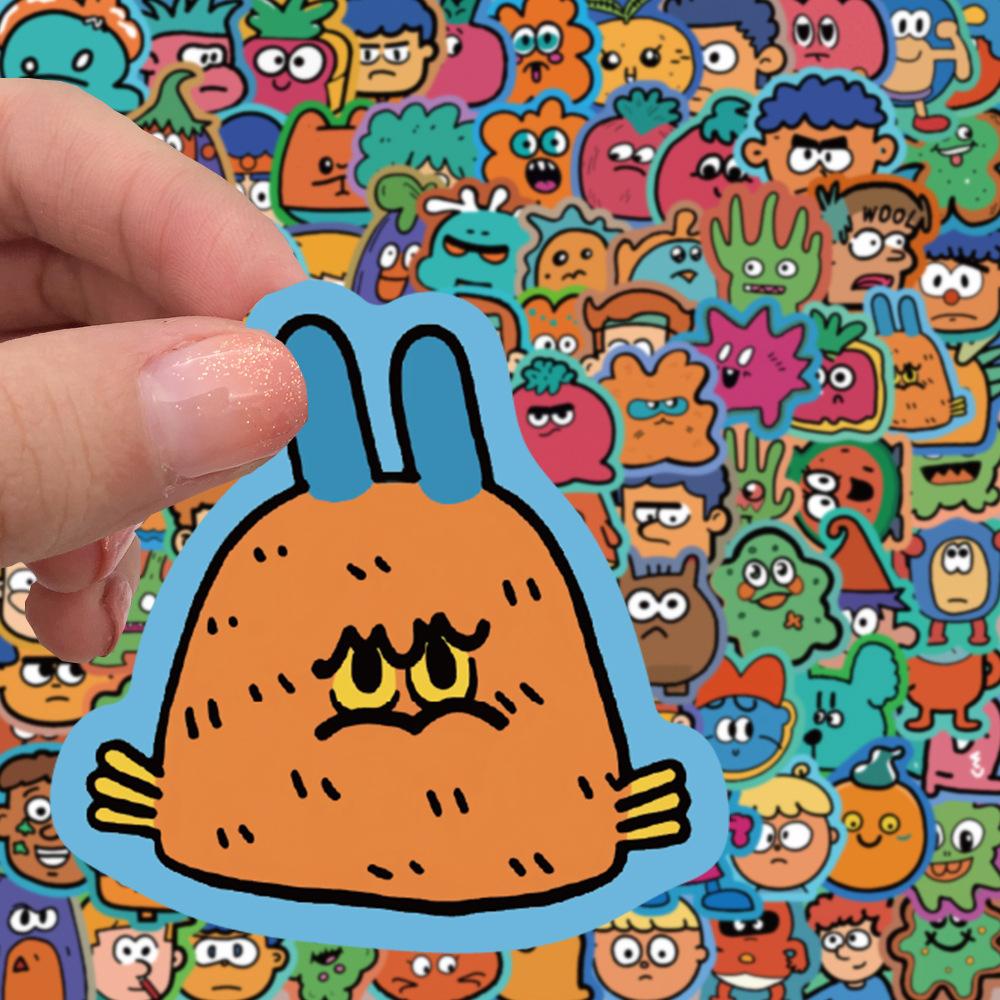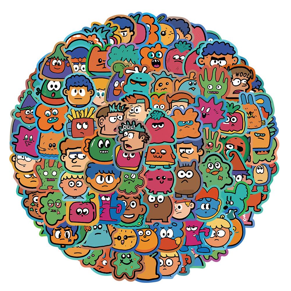 Compra 100 divertidas pegatinas de grafiti con dibujos animados para cuadernos, fundas de teléfono, equipaje, guitarras, material decorativo, pegatinas impermeables. al por mayor en Joom.pro