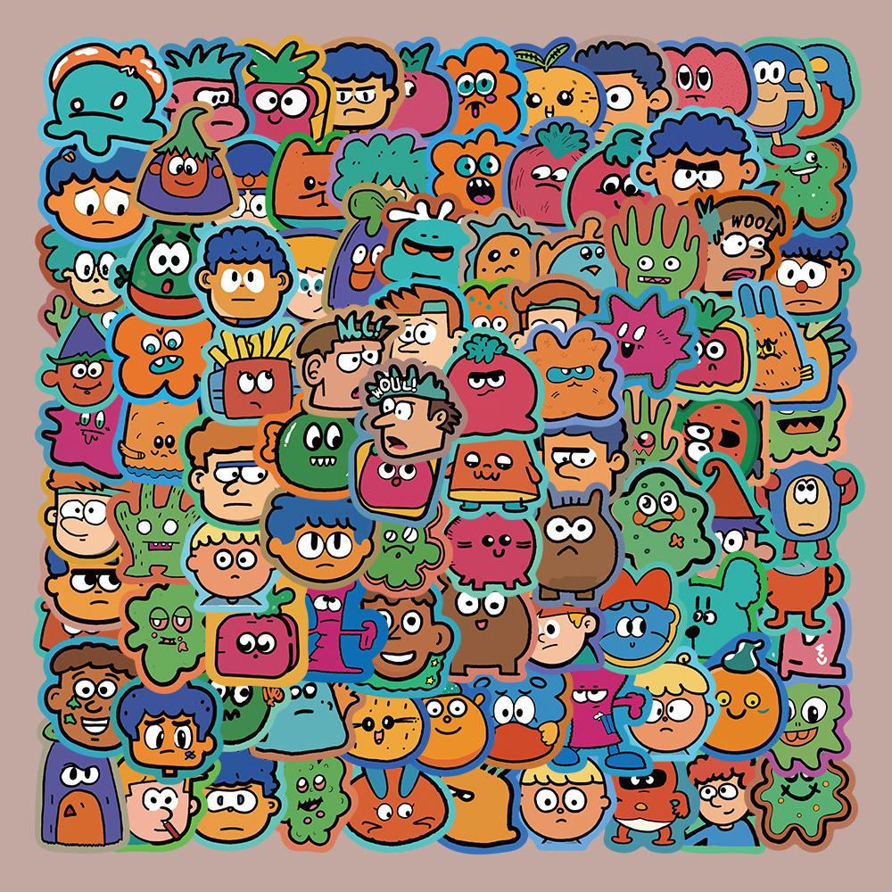 100 divertidas pegatinas de grafiti con dibujos animados para cuadernos, fundas de teléfono, equipaje, guitarras, material decorativo, pegatinas impermeables.